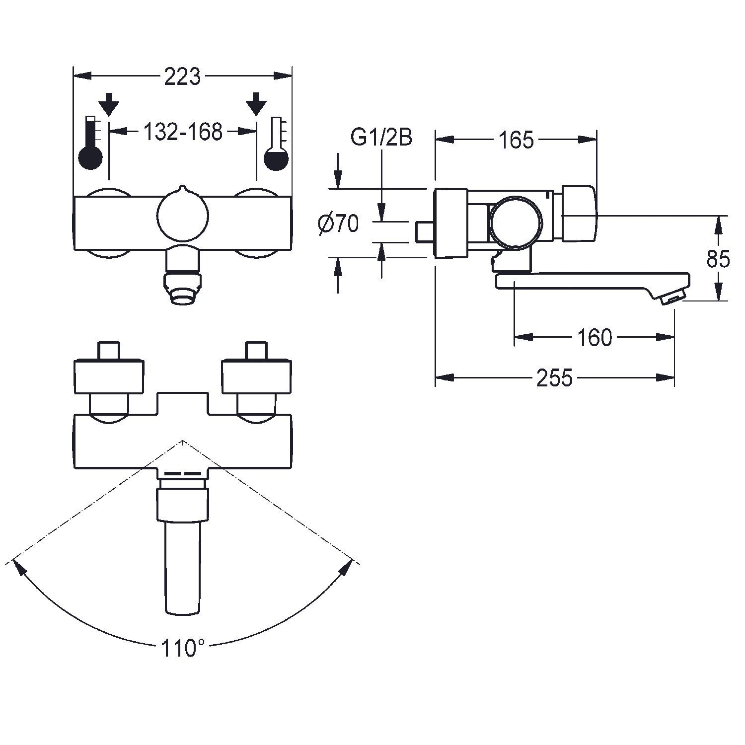 KWC KWC AR Wandbatterie, F5, hydr., Mischer, Schwenkauslauf, 225 mm, 6l