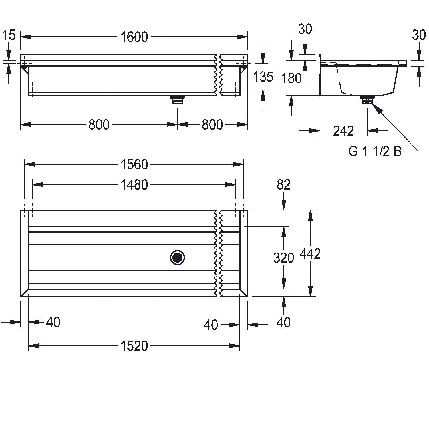 KWC KWC AR Waschrinne, PLANOX, Edelstahl, W.-Mont., 1600x210x442 mm, m. Arm-bank