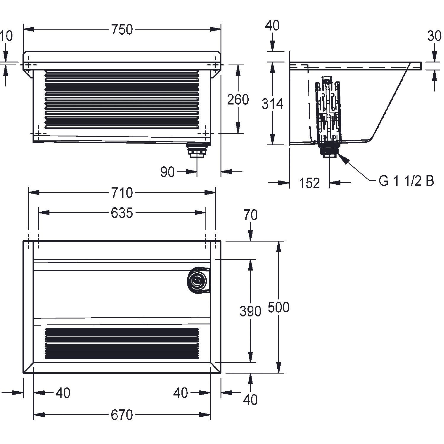 KWC KWC AR Waschtrog, SIRIUS, Chromstahl, 750x354x500 mm, Ablauf rechts