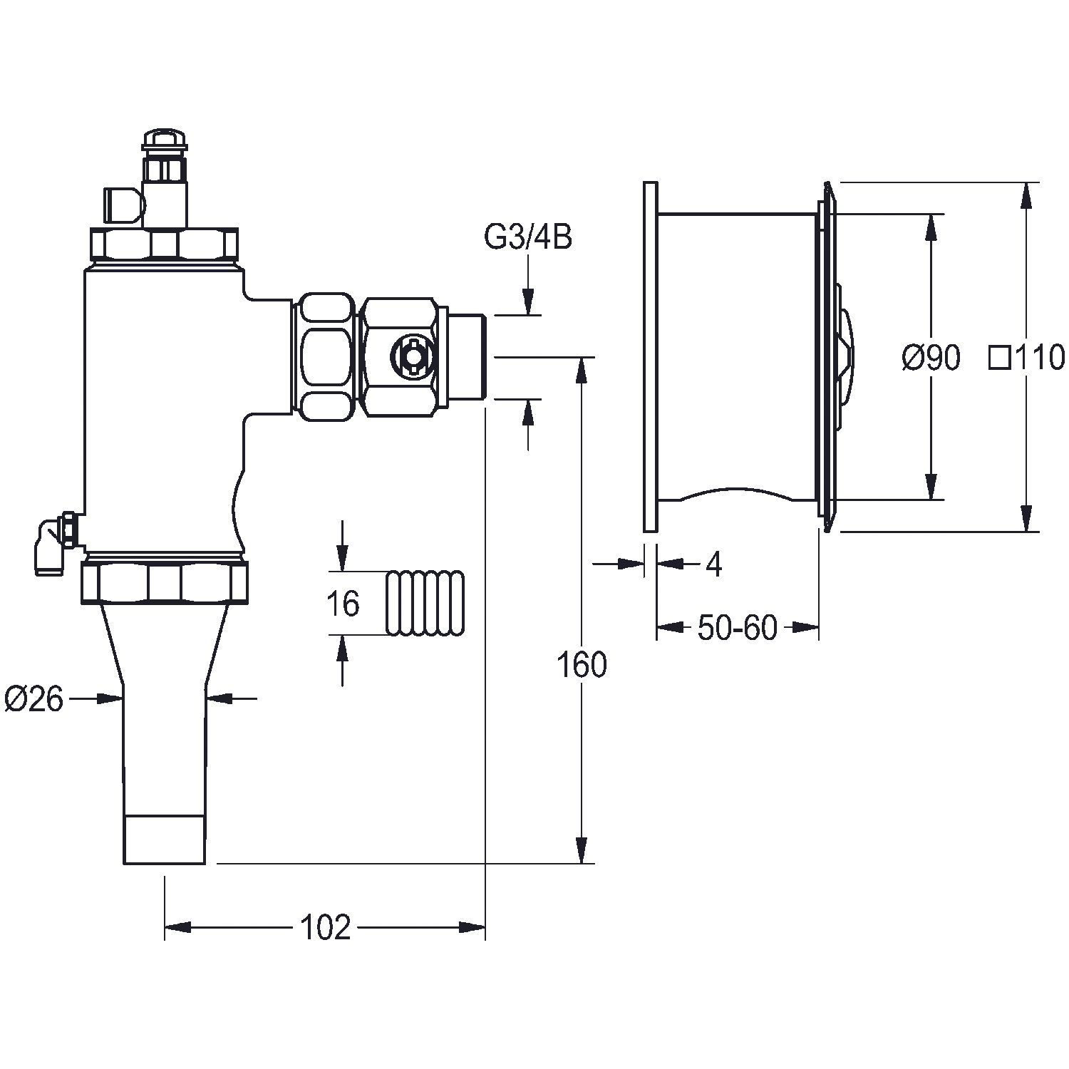 KWC KWC AR WC-Spüler, Aqualine, hydr., DN20, Hinterwandmontage, AG I, fernbetätigt