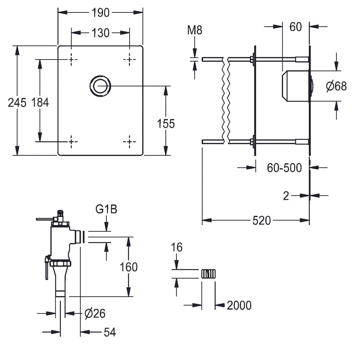 KWC KWC AR WC-Spüler, F3, hydraulisch, DN20, Hinterwandmontage, AG I, fernbetätigt