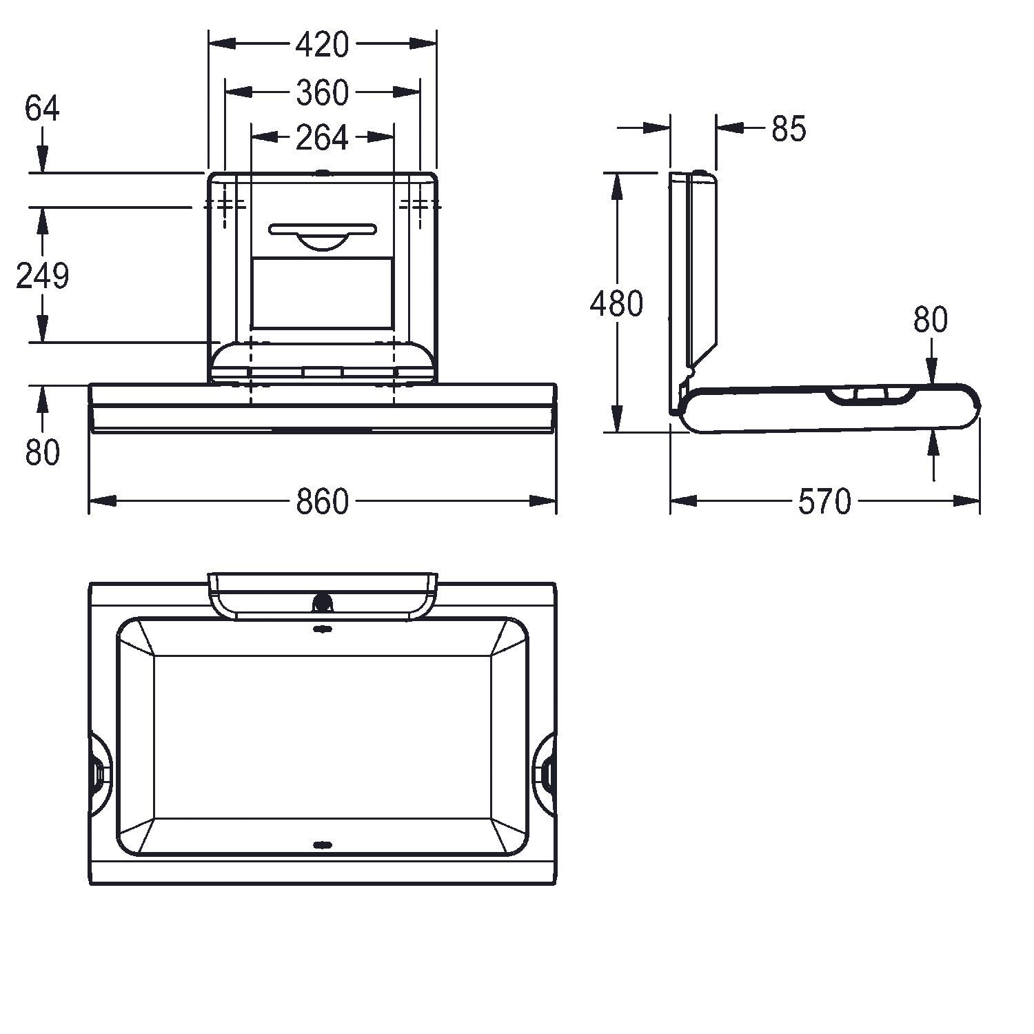 KWC KWC AR Wickeltisch, Cambrino, PP weiß, klappbar, offen 860x480x570 mm