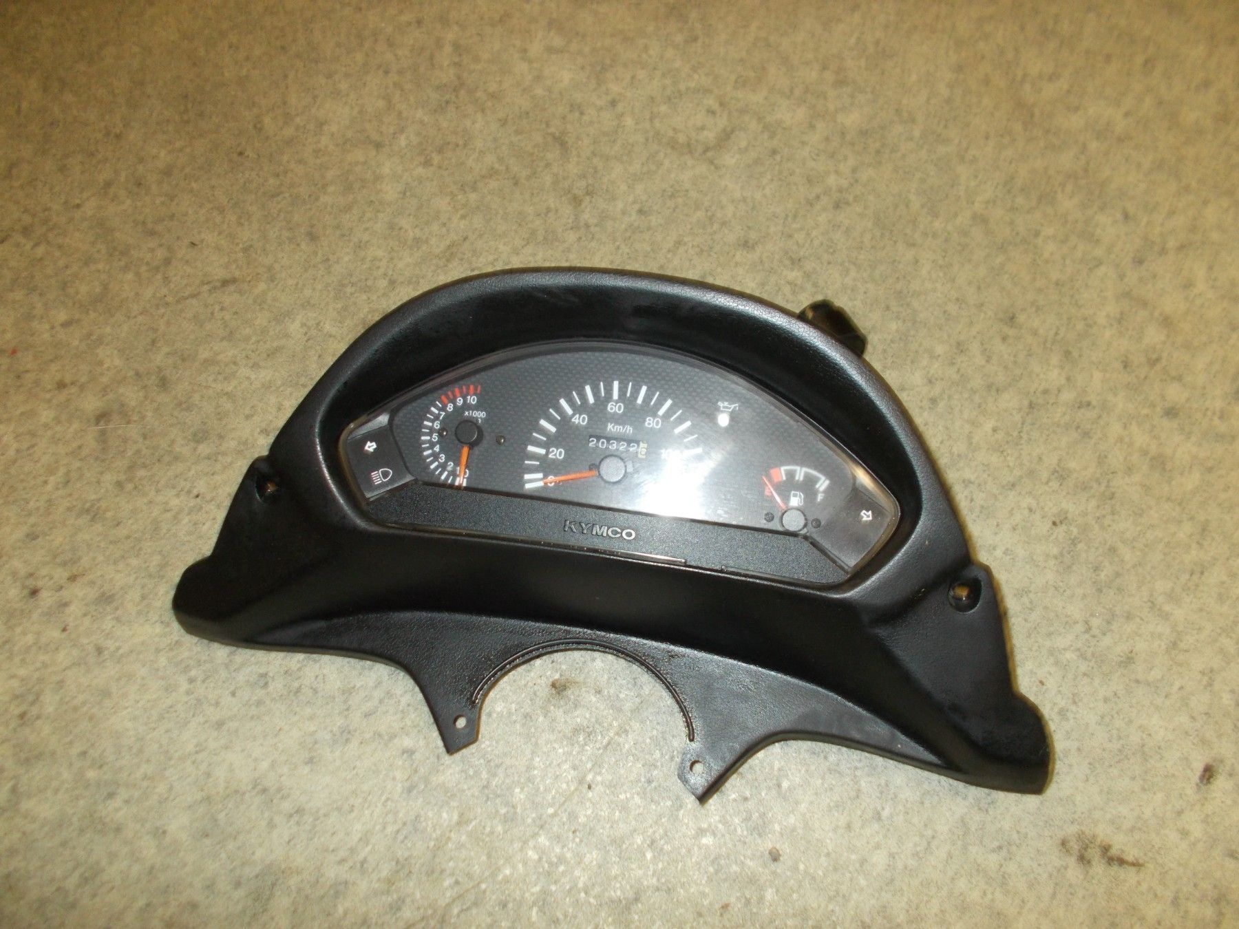 Gebrauchte Tachoeinheit incl. Tachoverkleidung von einem Motorroller Kymco Yager SH 50. Sehr guter Zustand. Tachostand 20323KM. Das Blinkerrelais ist dabei.