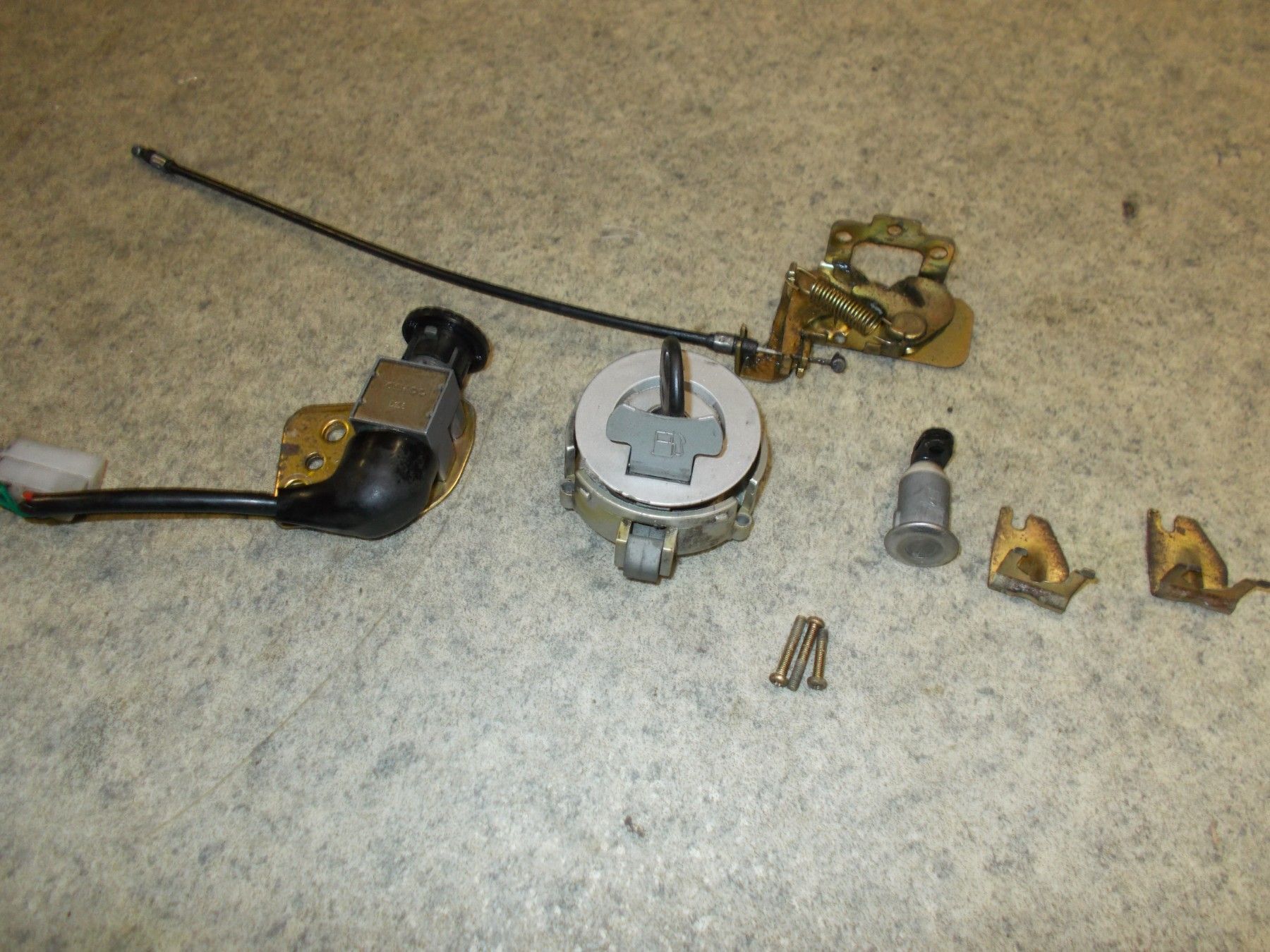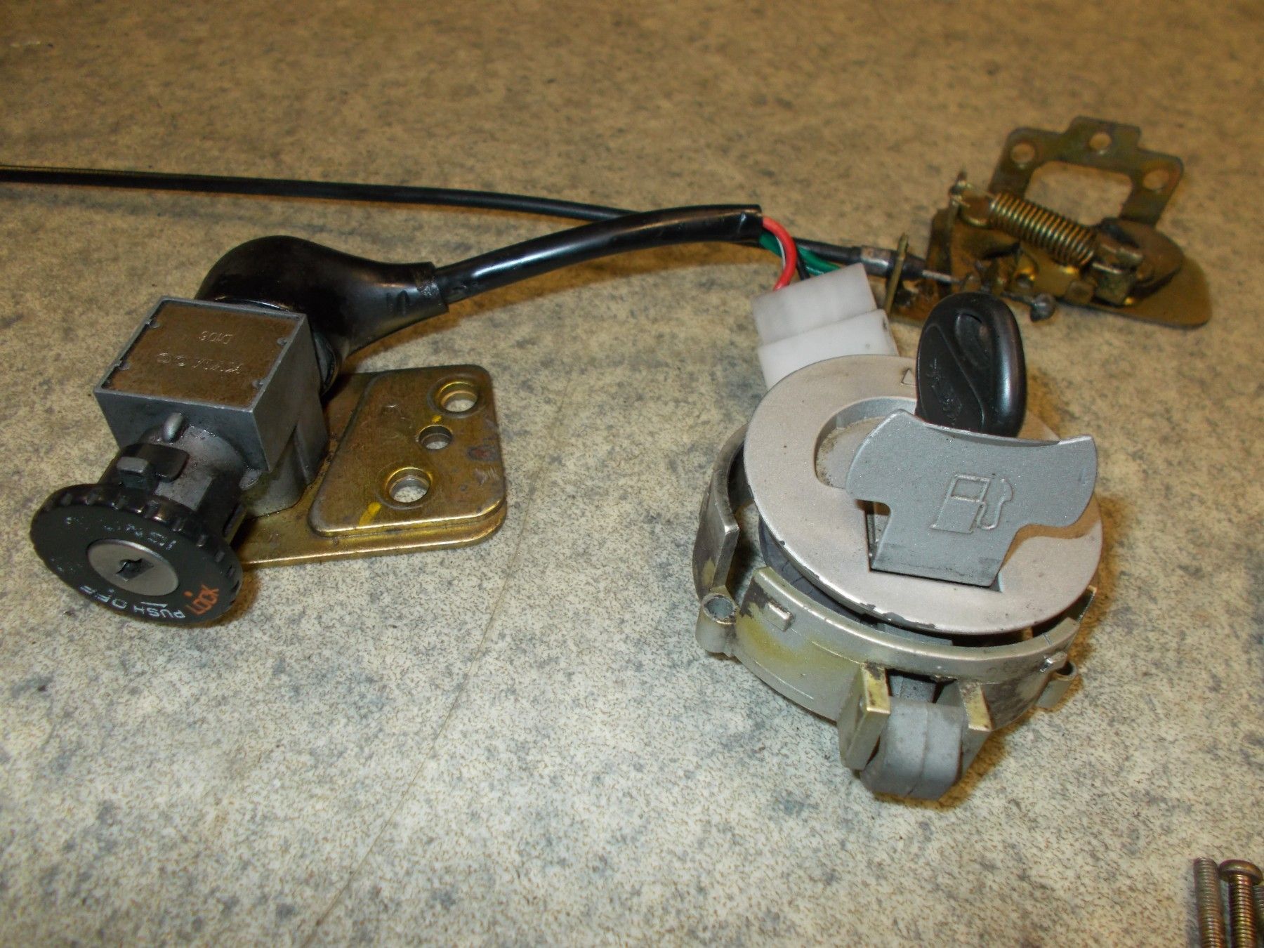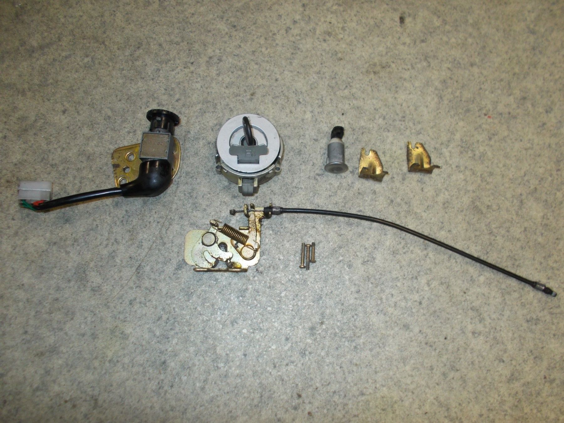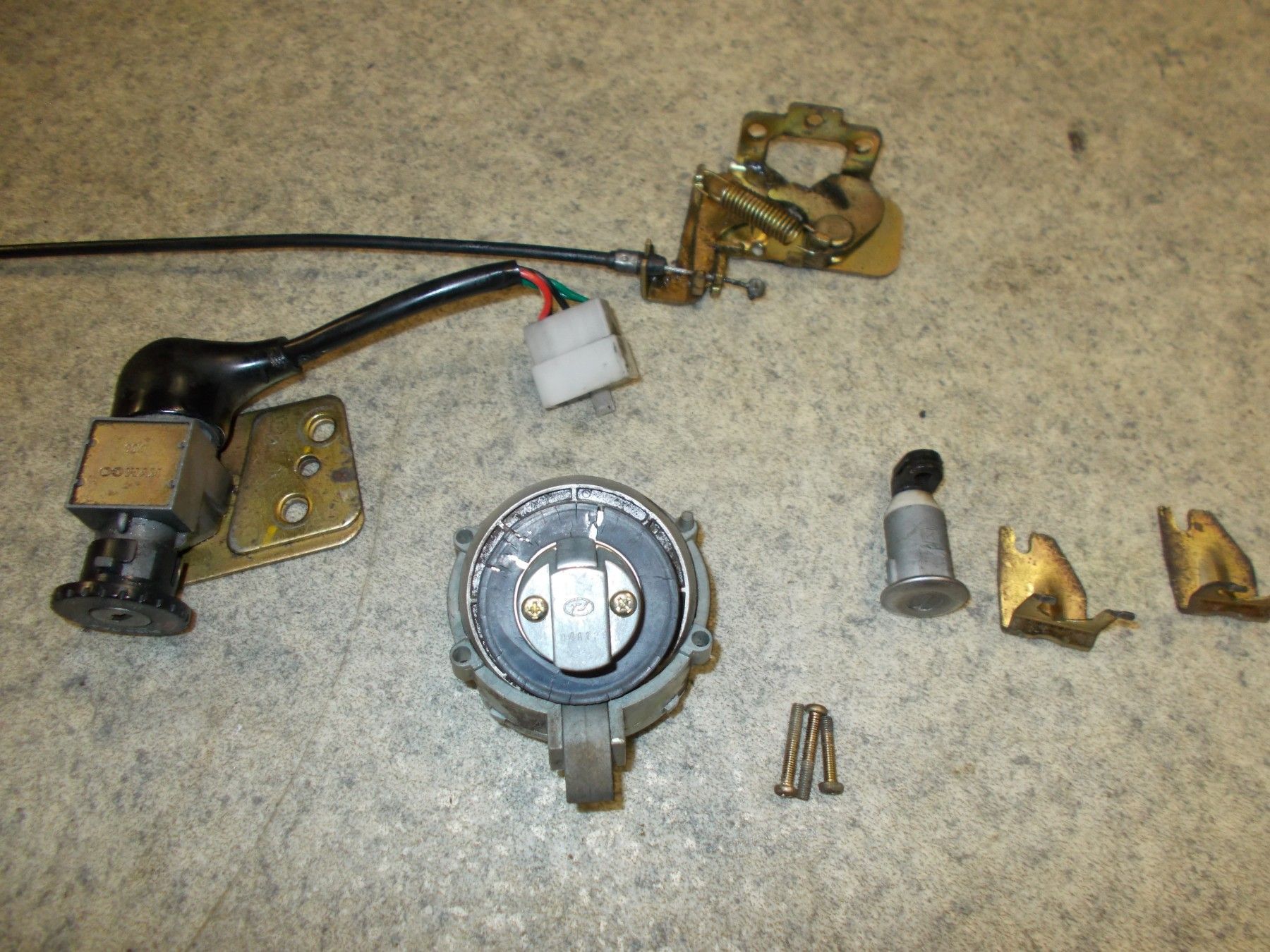 Gebrauchter Schlosssatz von einem Motorroller Kymco Yager SH 50ccm. Inbegriffen sind das Zündschloss mit 1 Schlüssel, Tankdeckel und Sitzbankschloss.