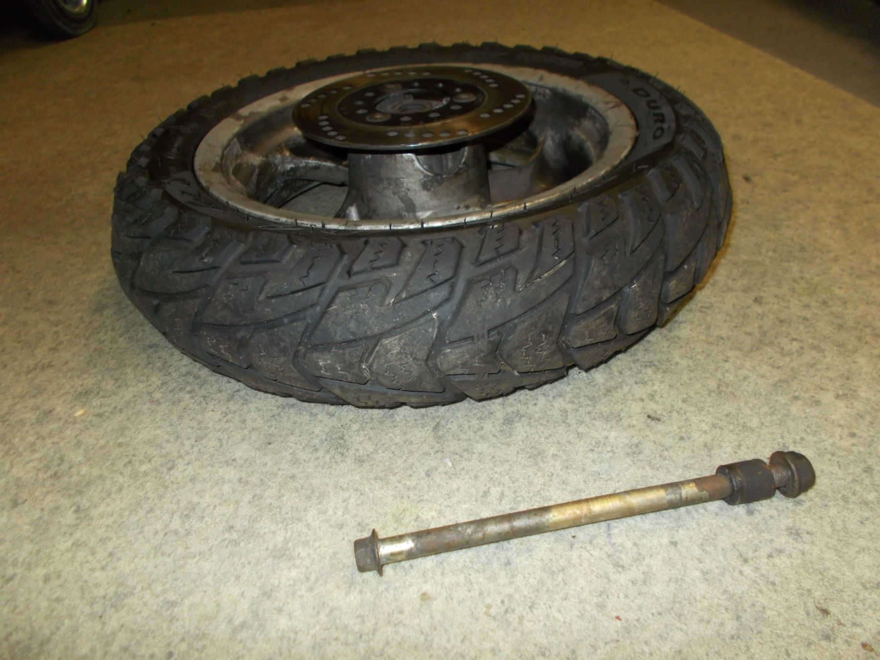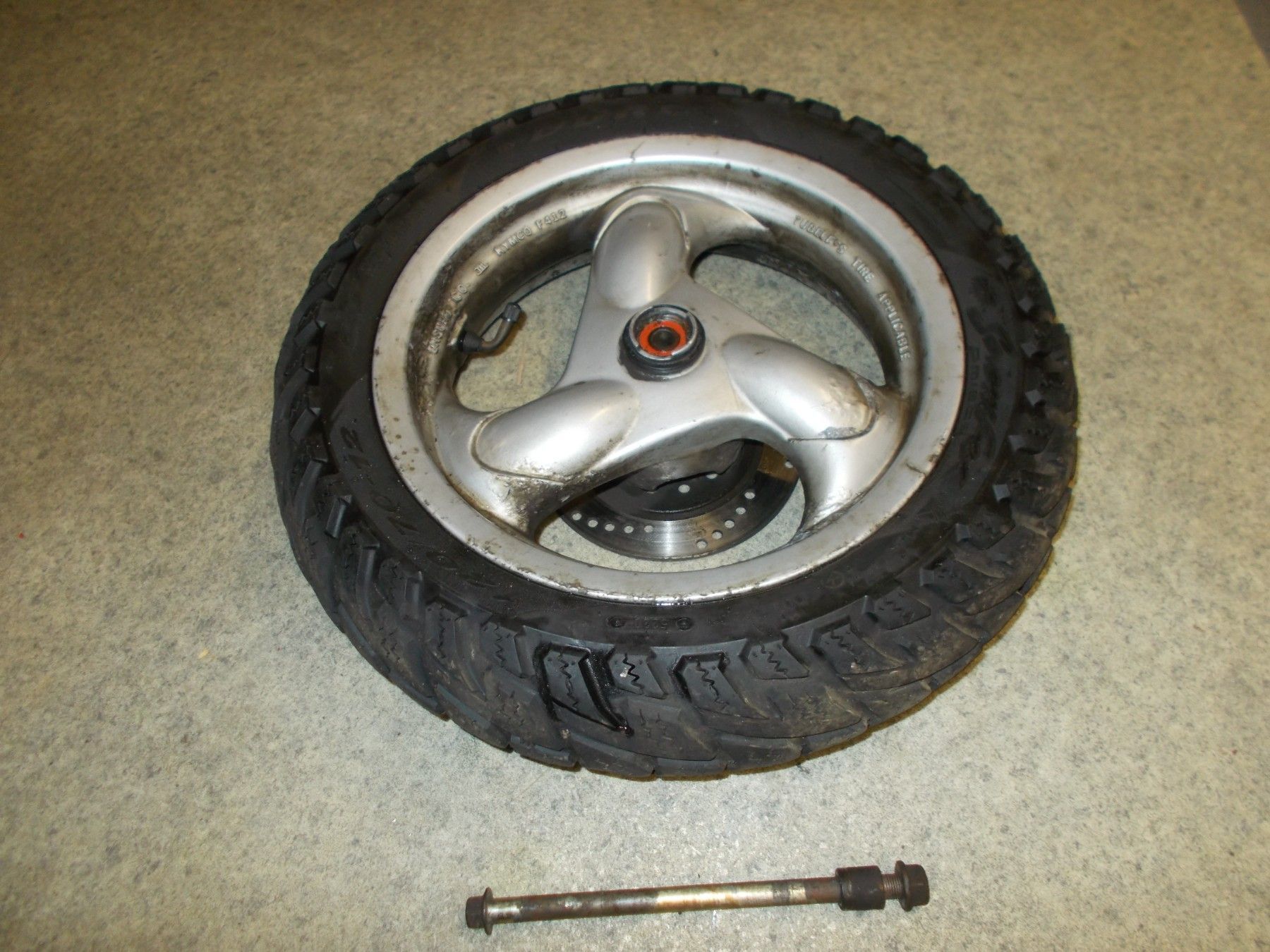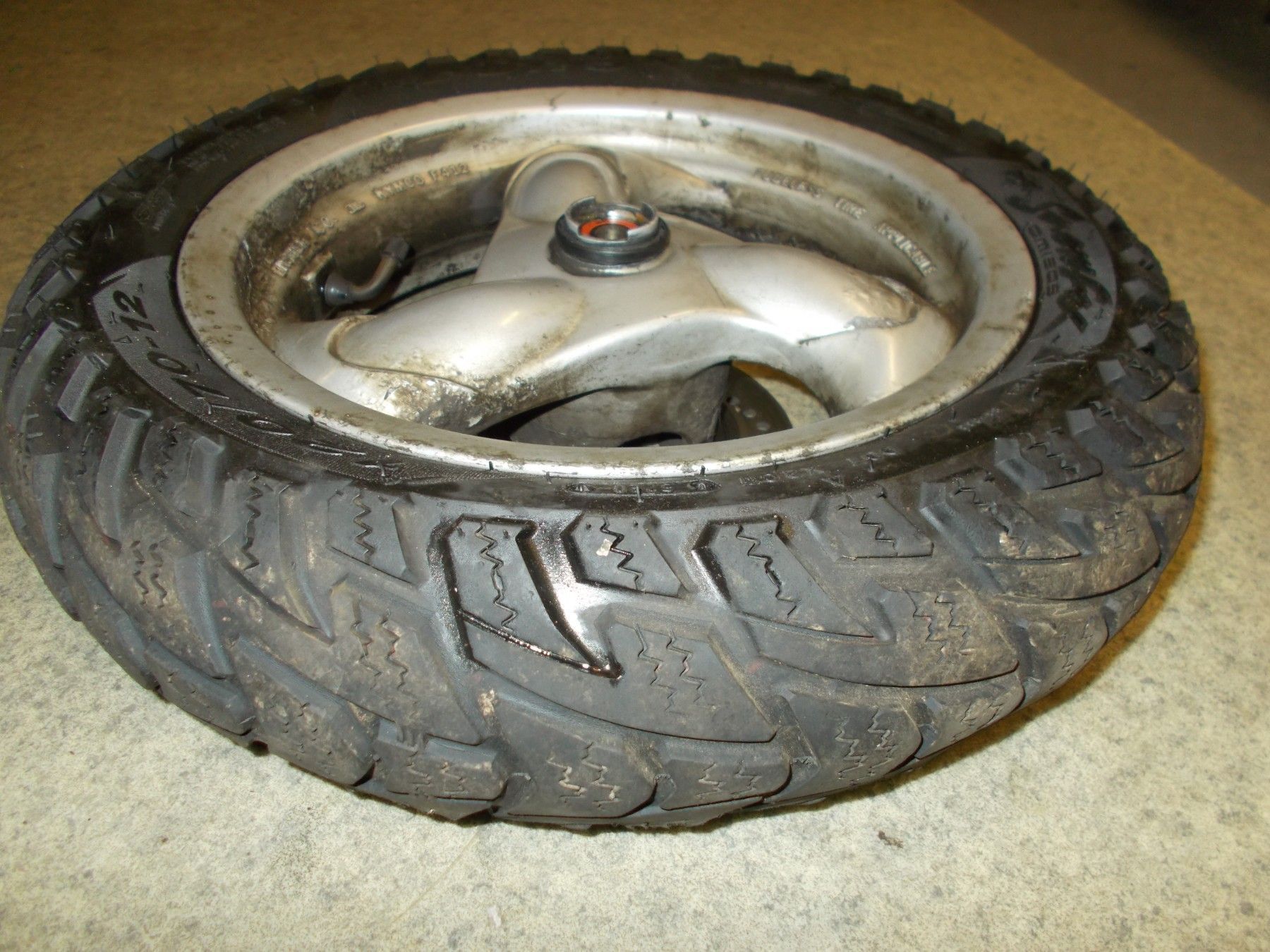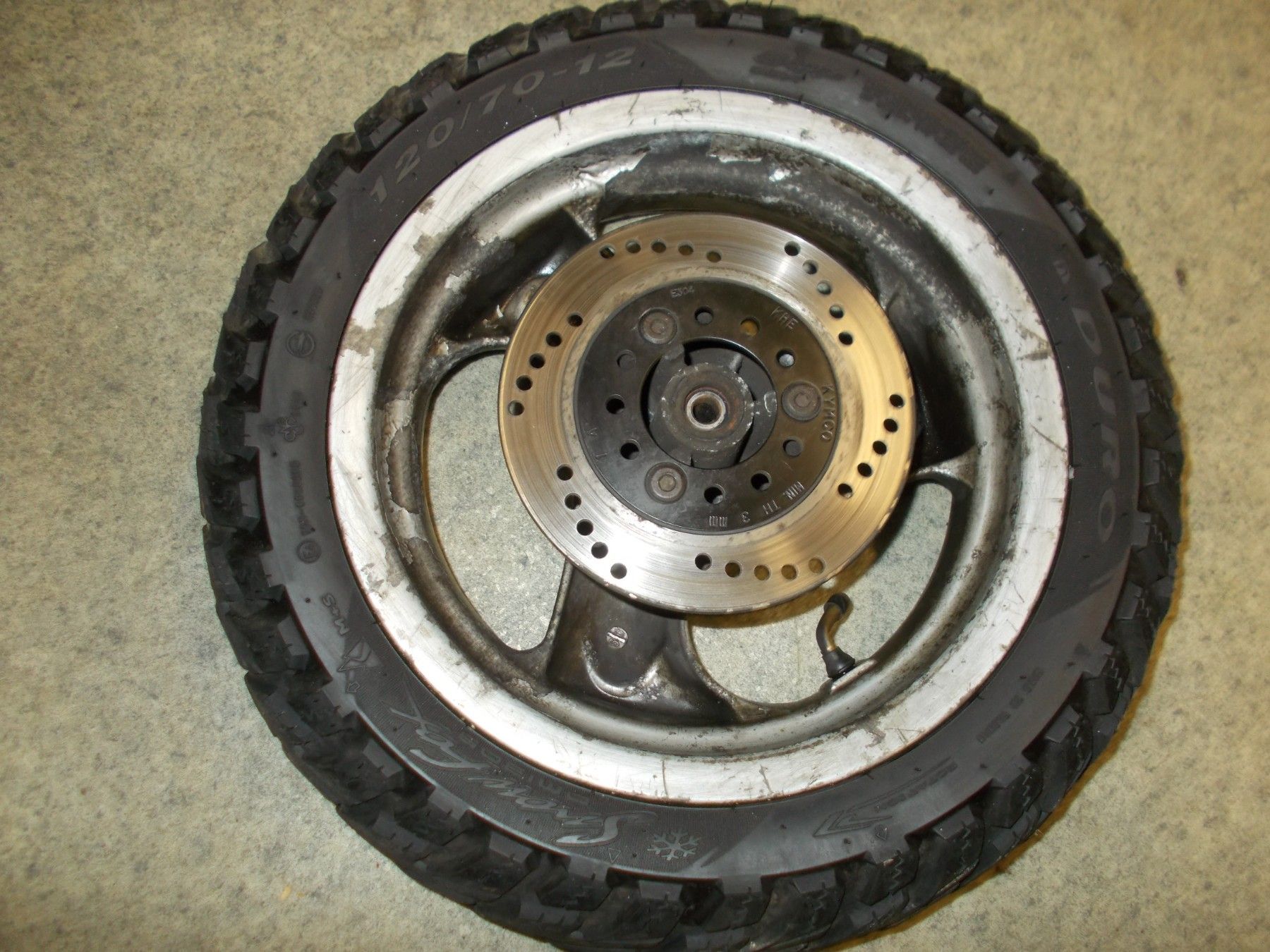 Ideal als Winterfelge da der reifen sehr grobes Profil aufweist. Größe 120/70-12.