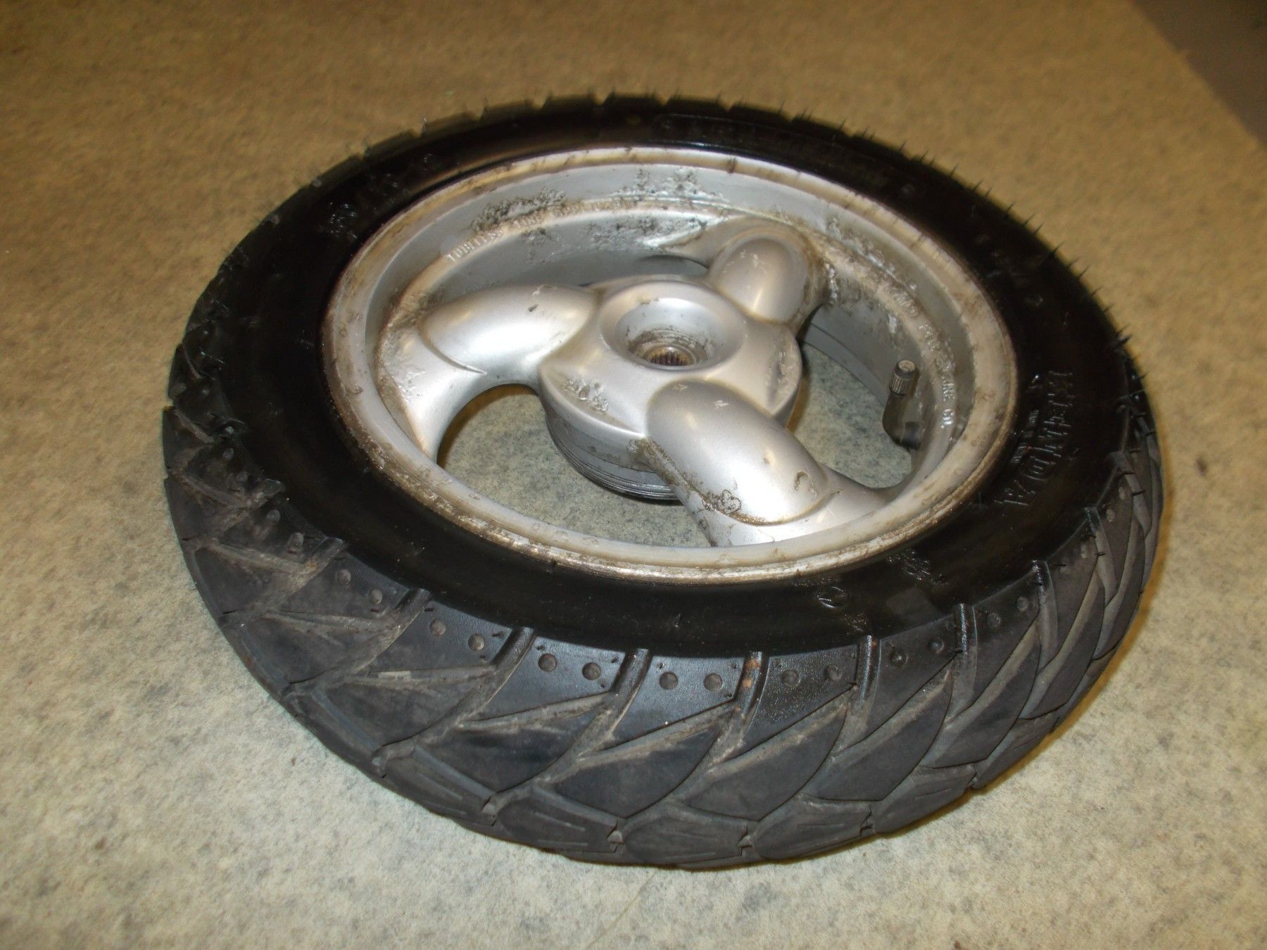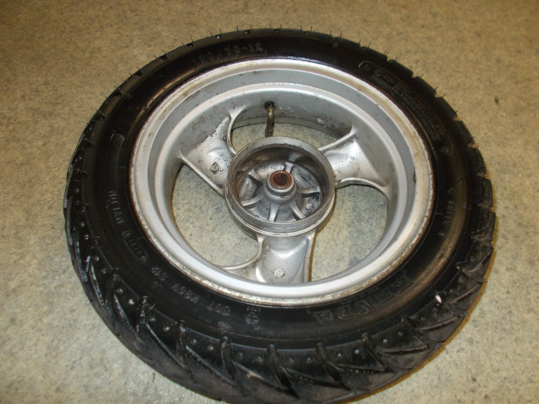 Gebrauchte hintere Felge incl. Reifen von einem Motorroller Kymco Yager/Spacer SH 50ccm.