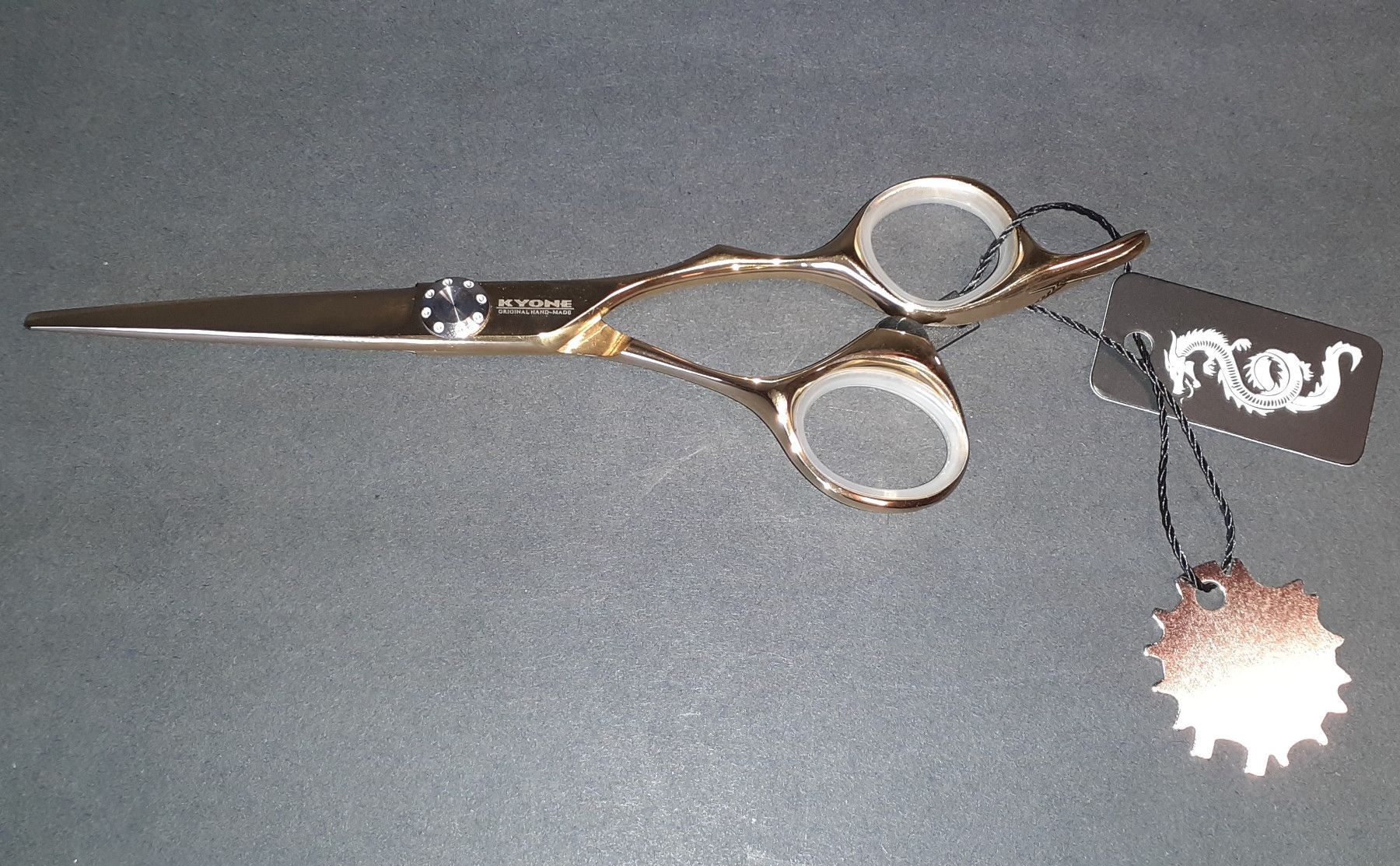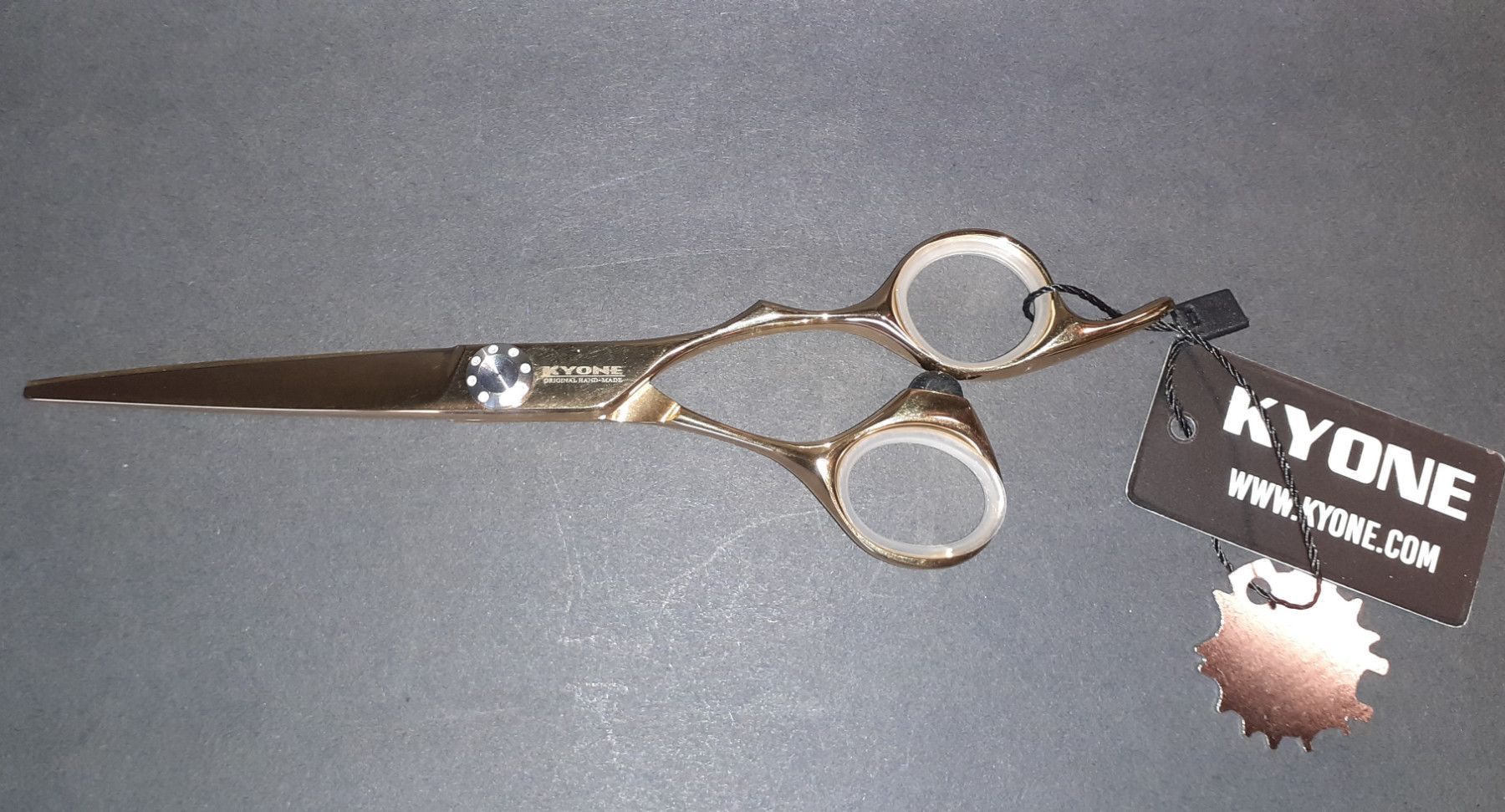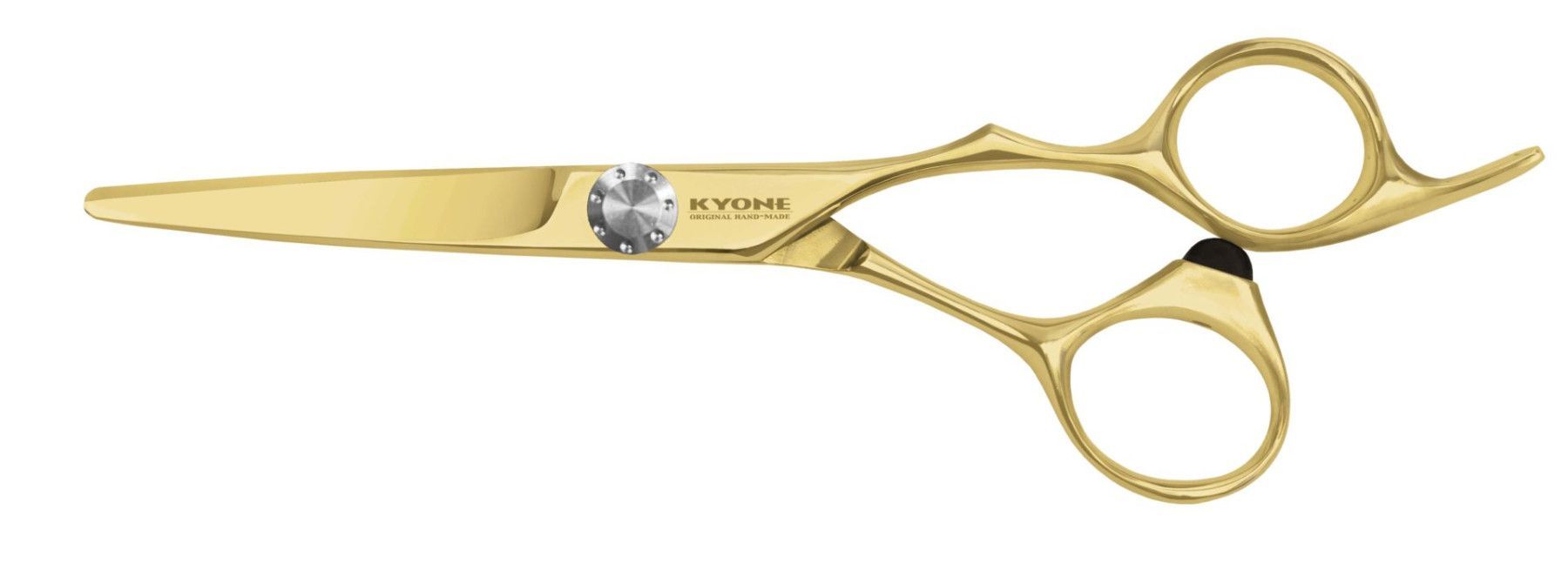 Kyone 710 Gold Haarschere erhältlich in: 5,5” / 6,0” • ergonomisches Design • leicht angewinkeltes Daumenauge • Hohlschliff und Convexe Klinge • Kugelgelagerte Verschraubung • Gold-Titan Beschichtung, extrem hart und verschleißfest • Antiallergisch