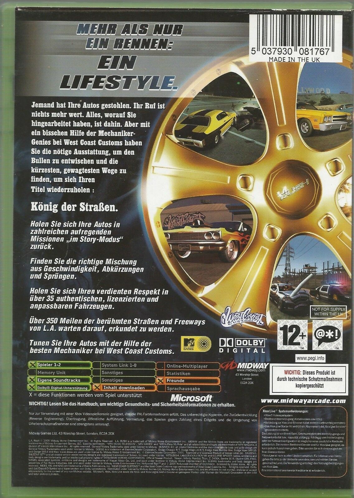 Spiel wie Abbildung, Originalverpackung mit Anleitung, DVD Hülle und Anleitung in sehr gutem Zustand, Spiele CD hat etwas Gebrauchsspuren, funktioniert tadellos In L.A. Rush triffst du die Crew von West Coast Customs und lebst das Leben eines Asphaltcowboys auf den Straßen von Los Angeles. Fühle den... Mehr