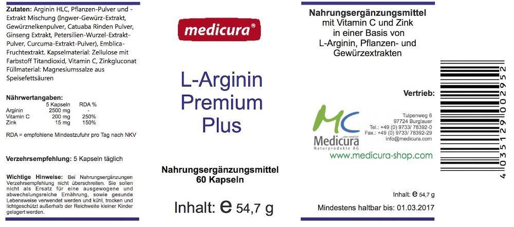 Medicura L-Arginin Premium Plus - 60 Kapseln