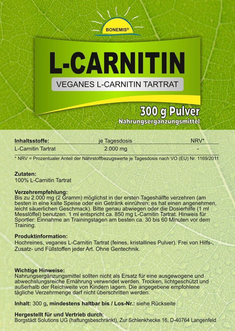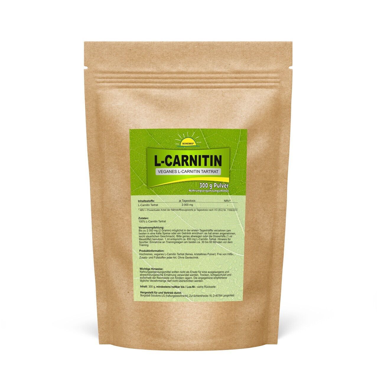L-Carnitin Tartrat, veganes Pulver, ohne Zusatzstoffe, 300 g im Beutel, Bonemis®