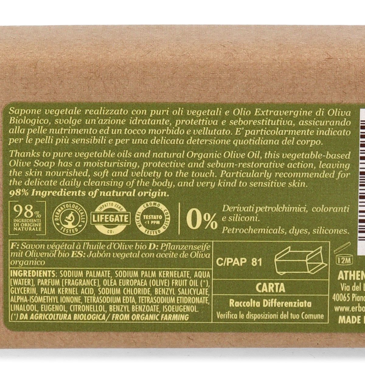 L'Erboristica di Athena's Pflanzliche Oliven Öl Seife 100 g