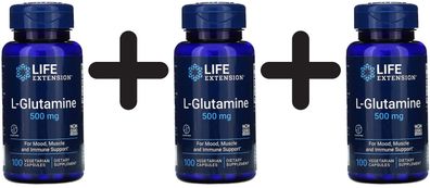 • 3 x Life Extension L-Glutamine, 500mg - 100 vcaps