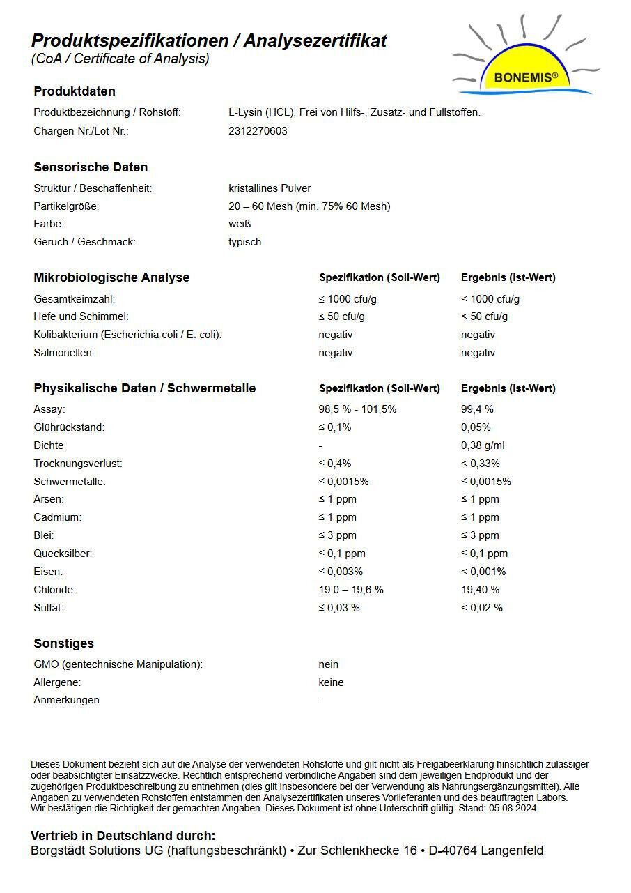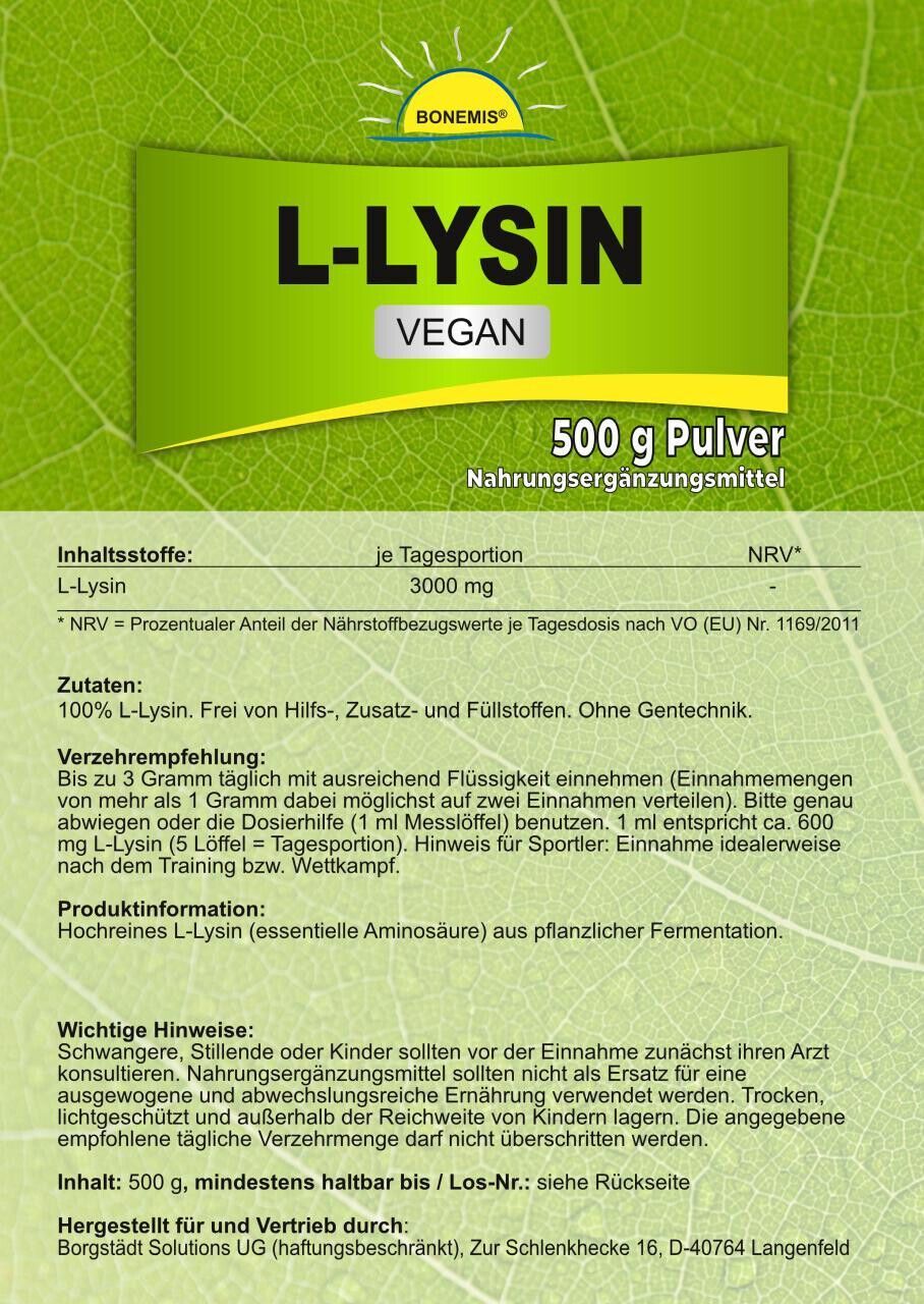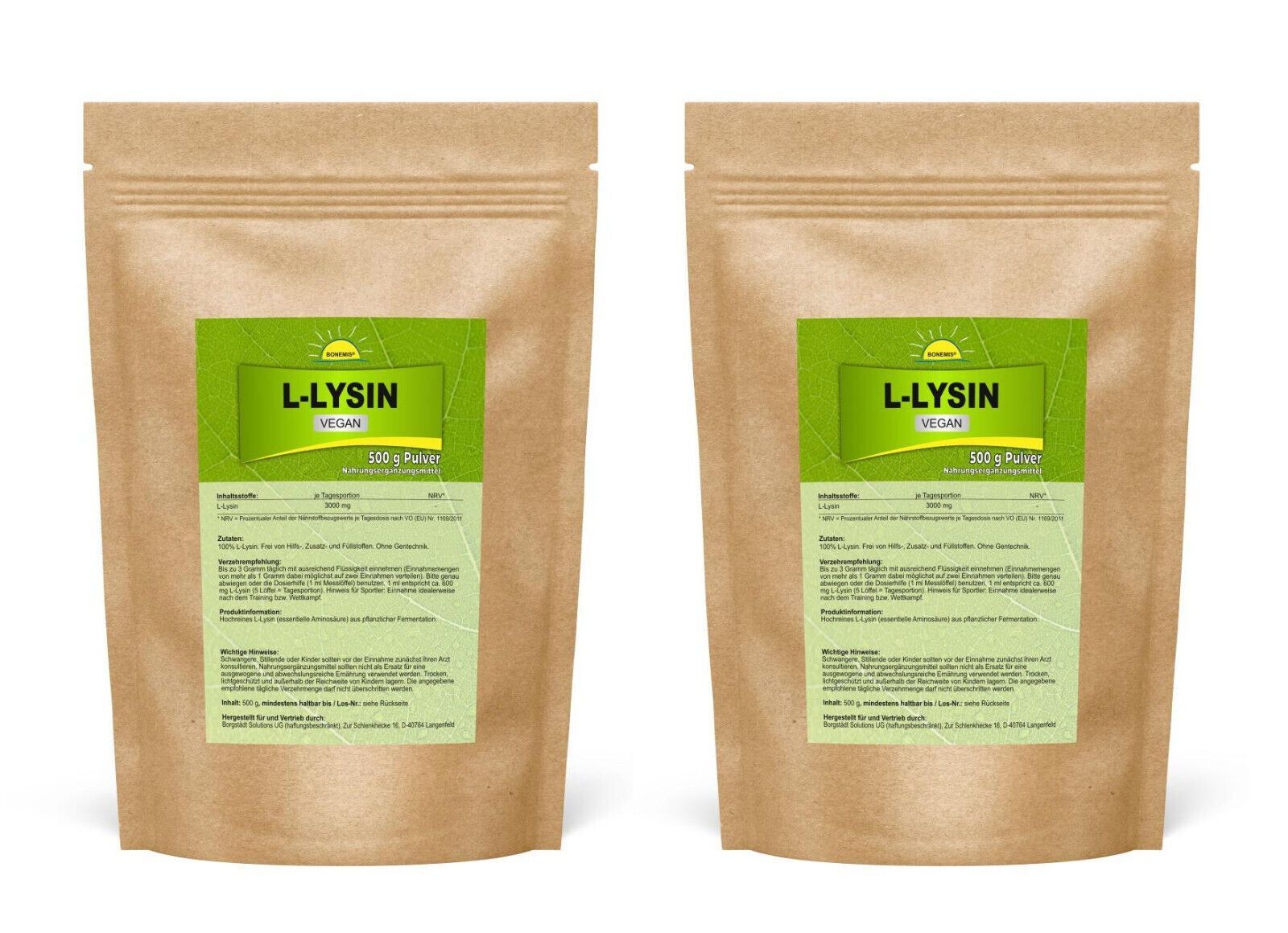 L-Lysin, veganes Pulver, 1 kg (2 Beutel à 500 g), ohne Zusatzstoffe