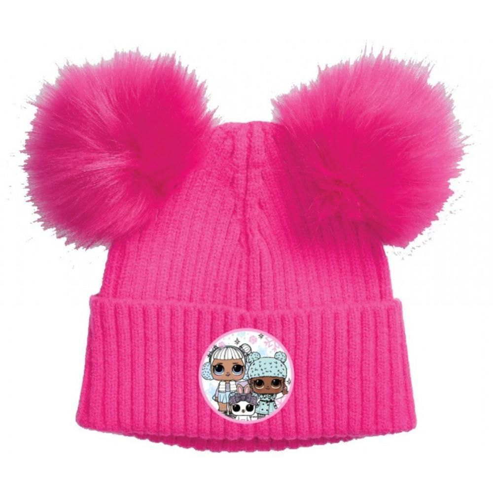 L.O.L. Surprise Strickmütze mit Bommeln / Pompons, Bommelmütze, pink mit Aufnäher