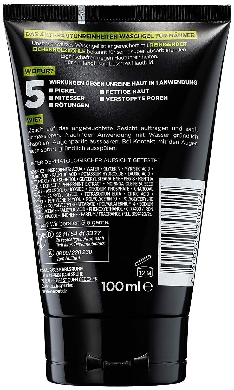 L'Oréal L'Oral Men Expert Pure Charcoal Waschgel unreine Haut Mitesser Herren 100 ml