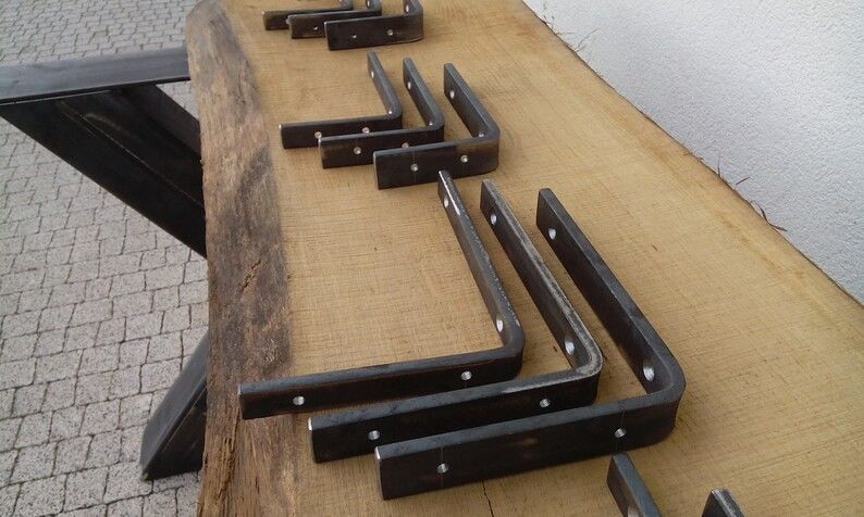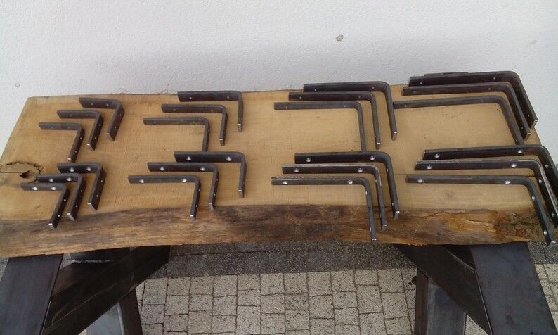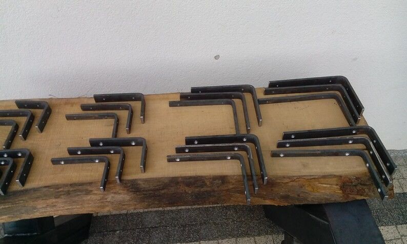 L-Regalwinkel für Fachbodenregale aus 8 mm starkem Stahl Jeder Haken hat 4 normale Löcher mit einem Durchmesser von 6 mm. Zusätzlich kann ich verjüngte Löcher anbringen - Aufpreis 1 Euro pro Haken (4 Löcher) (Schreiben Sie eine private Nachricht) Flachstahl 20x8 mm. - 10x10 cm - - 10x15 cm - - 15x20