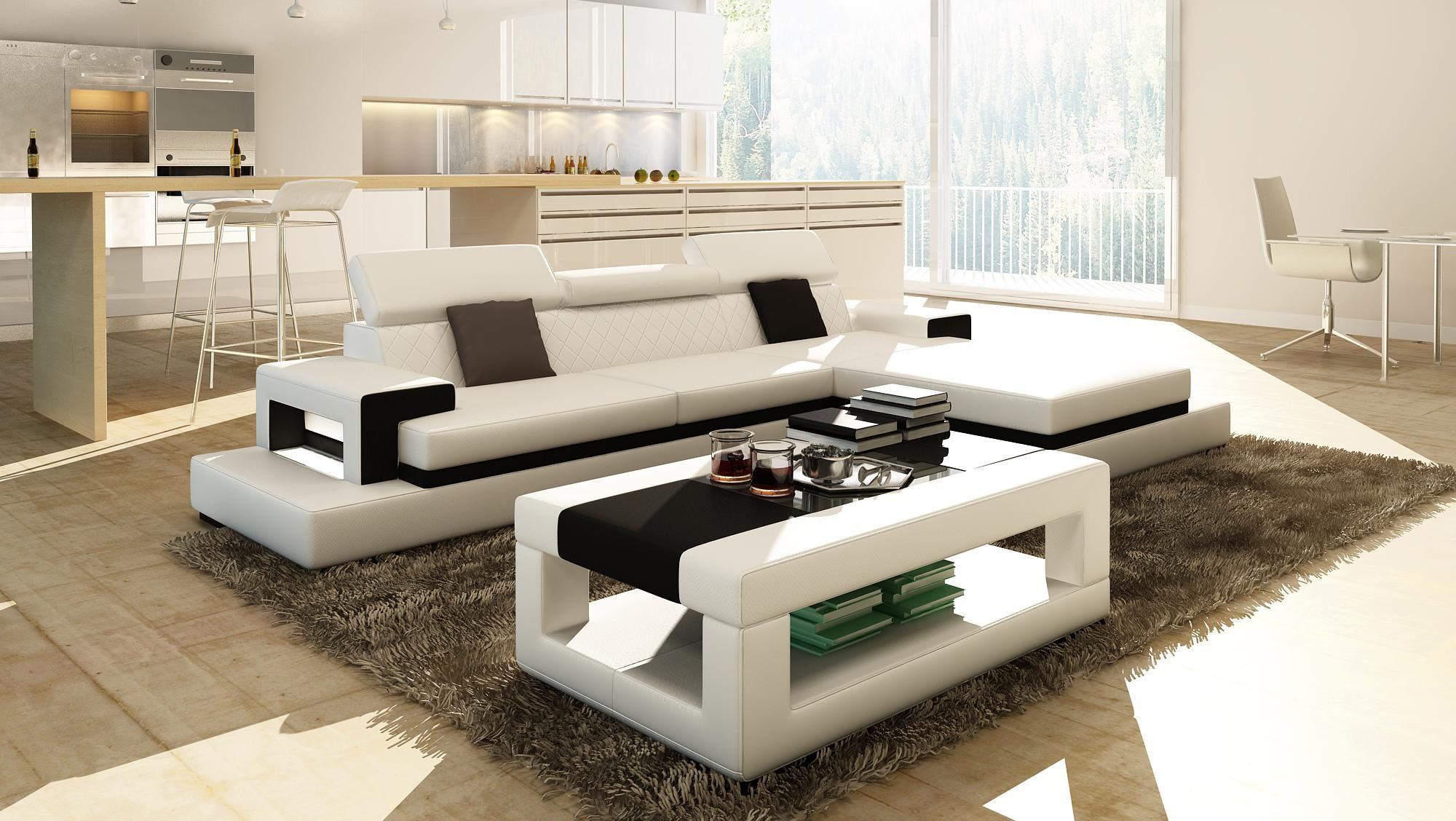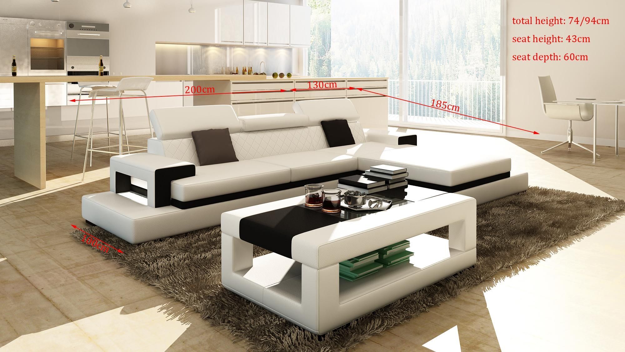 L-Shape Black White Leather Upholstery Sofas Couches New Living Area Corner Set