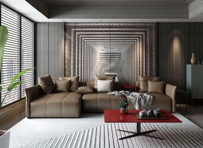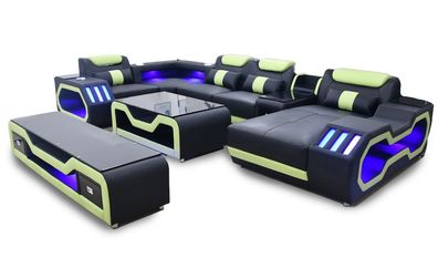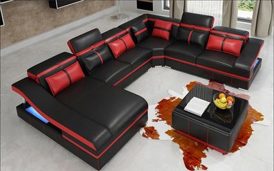 Set Luxury Modern Ecksofa U-Form Designer und Couchtisch Wohnzimmer Leder Neu