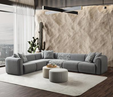 Graues Wohnzimmer Set Luxuriöses Ecksofa Designer Hocker Edle Möbel