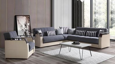 Wohnzimmer Set Luxus Möbel L-Form Sofa Sessel Textil Möbel Set Neu