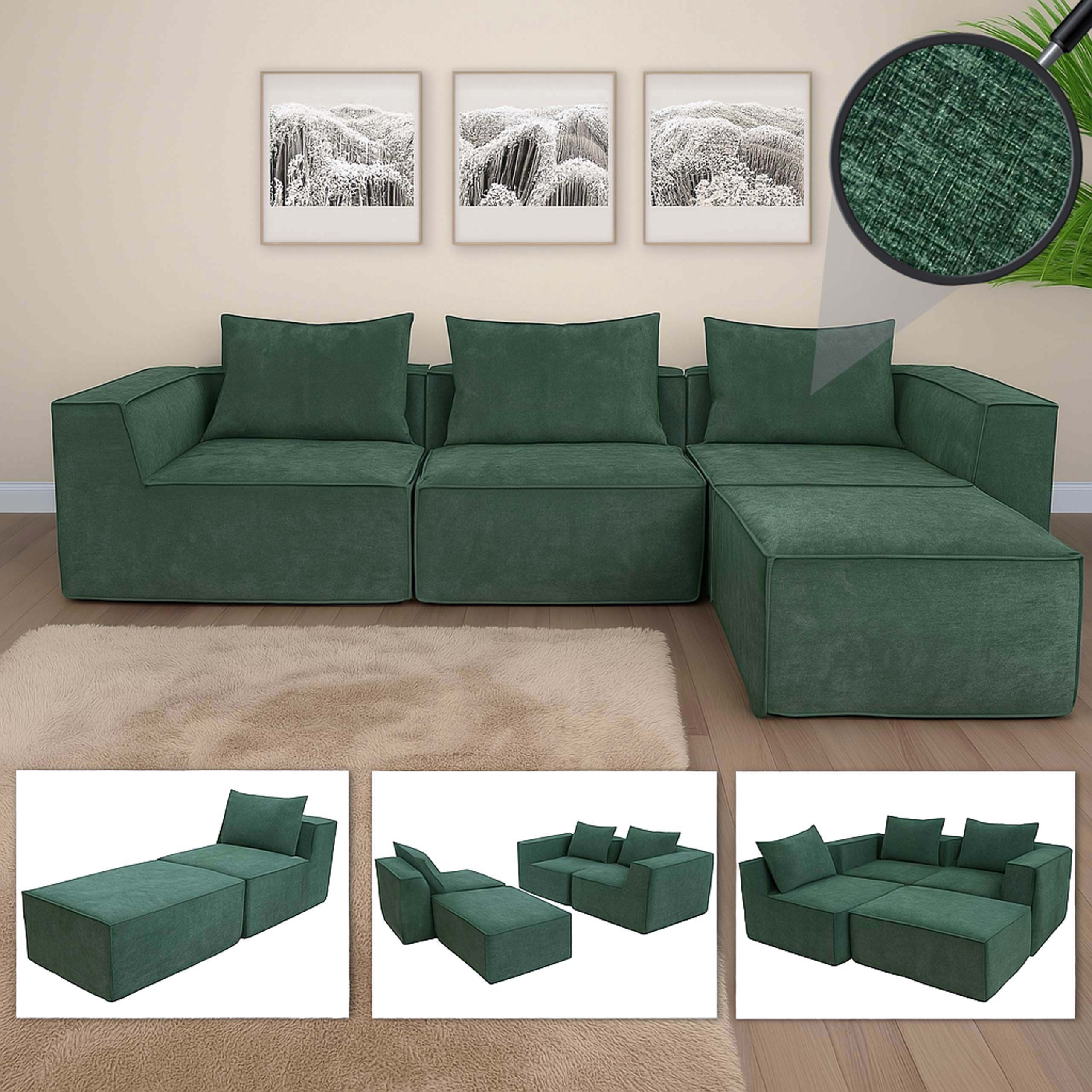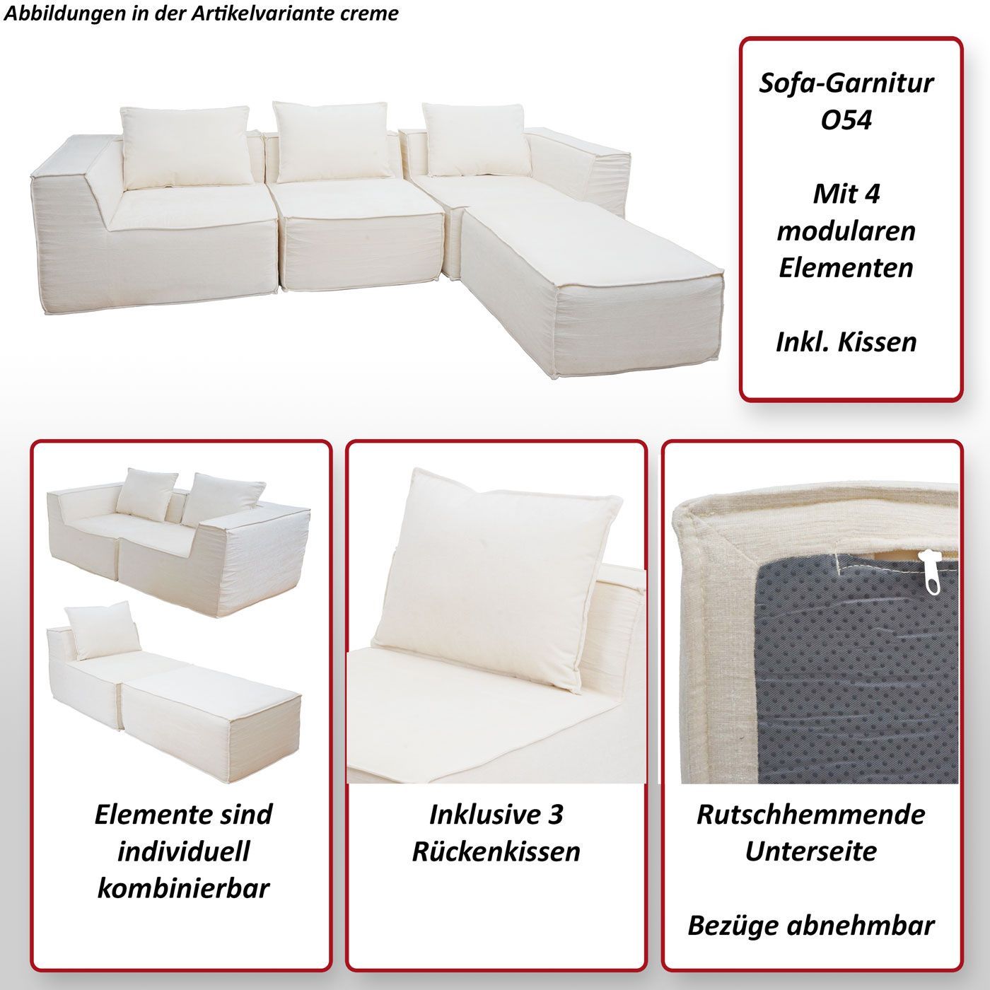 Mendler L-Sofa HWC-O54, Lounge-Couch mit Ottomane, modular rechts/links, Stoff 63x270x190cm