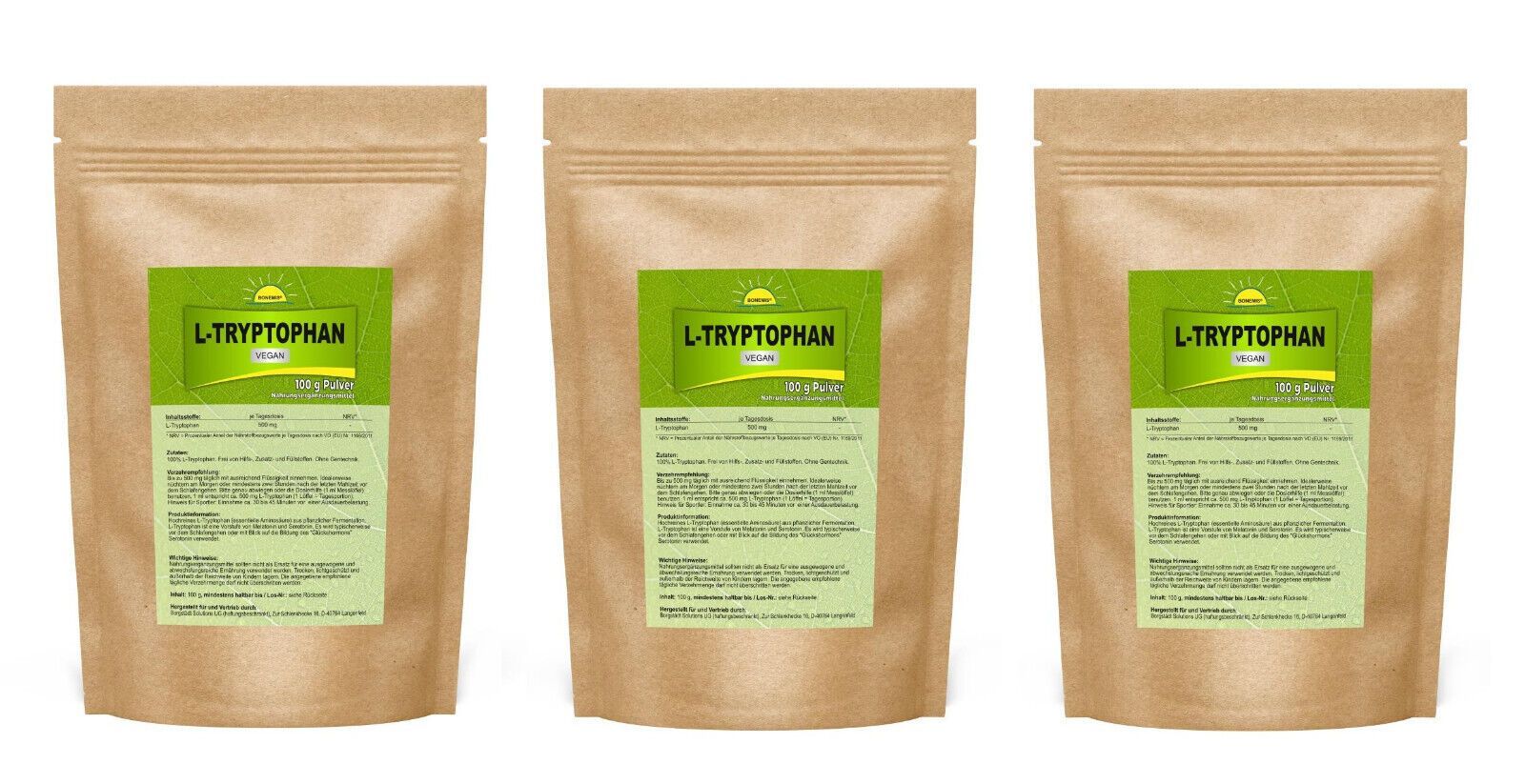 L-Tryptophan, veganes Pulver, ohne Zusätze, 300 g (3 Beutel à 100 g), Bonemis®