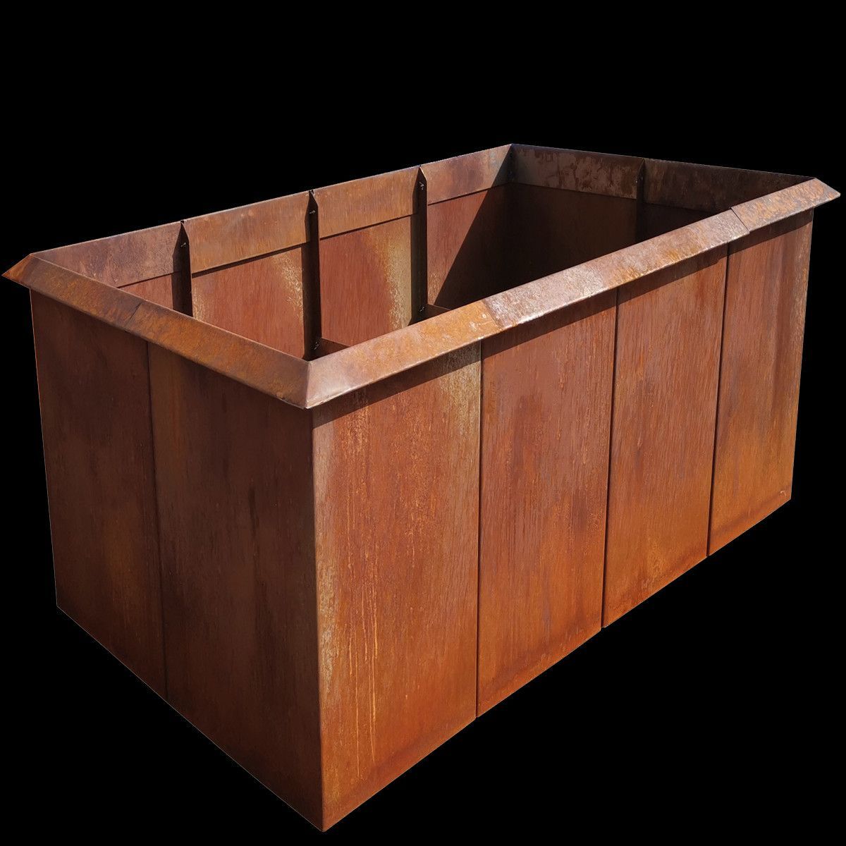 Klassisches Edelrost Hochbeet mit Schneckenschutz im Baukastenprinzip. Jedes Beet wird extra für Sie angefertigt. Der Schneckenschutz wird einfach auf das Beet aufgesetzt. Das Grundmodel besteht aus 4 Eckteilen, diese können mit beliebig vielen Seitenelementen kombiniert werden. Es sind somit neben