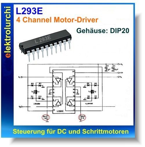 Texas Instruments L293E - 4-Kanal Motorsteuerung Motortreiber f. DC / Schrittmotoren, DIP20, 3St