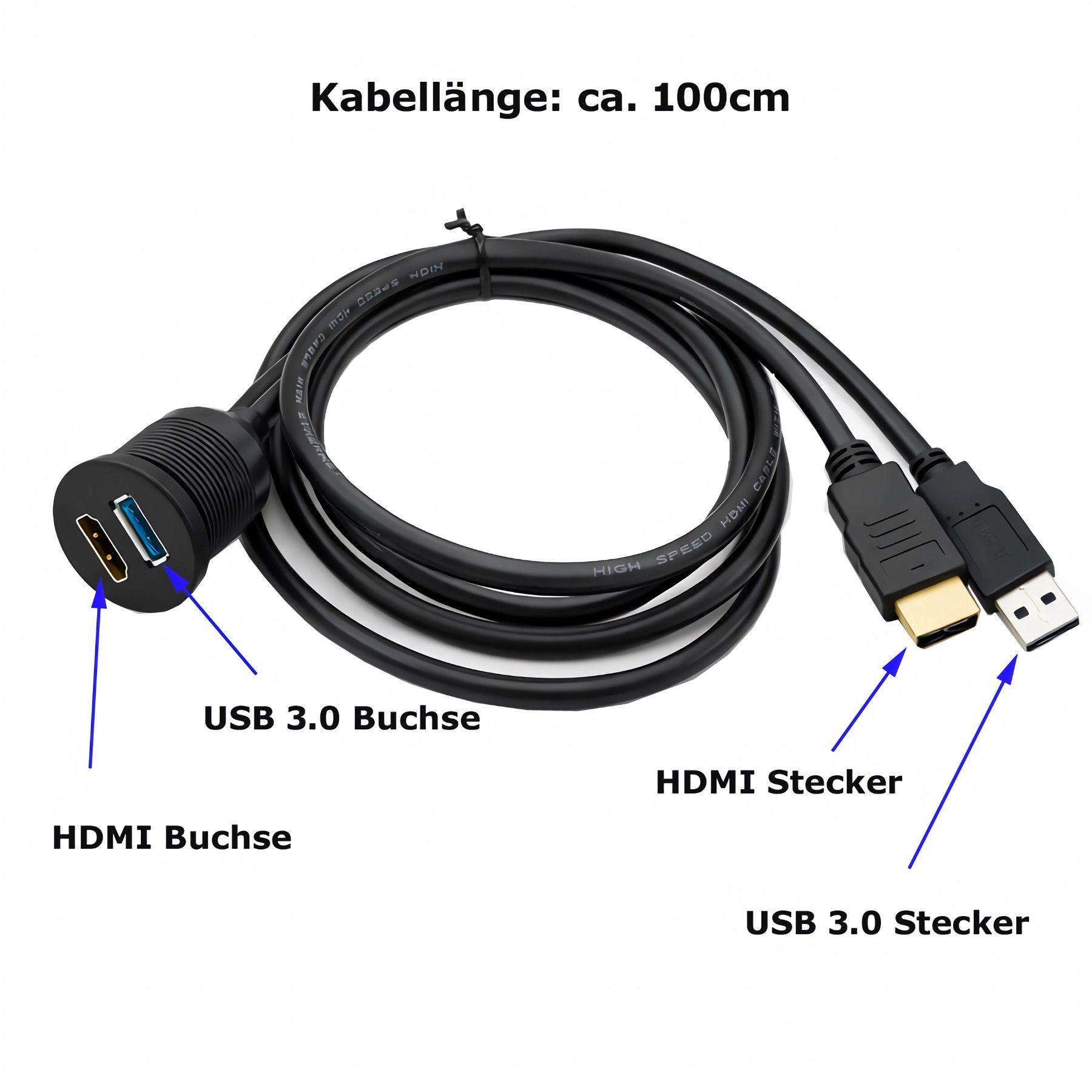 L38C USB 3.0 A + HDMI Verlängerungskabel Panel-Mount Auto Armaturenbrett 100cm