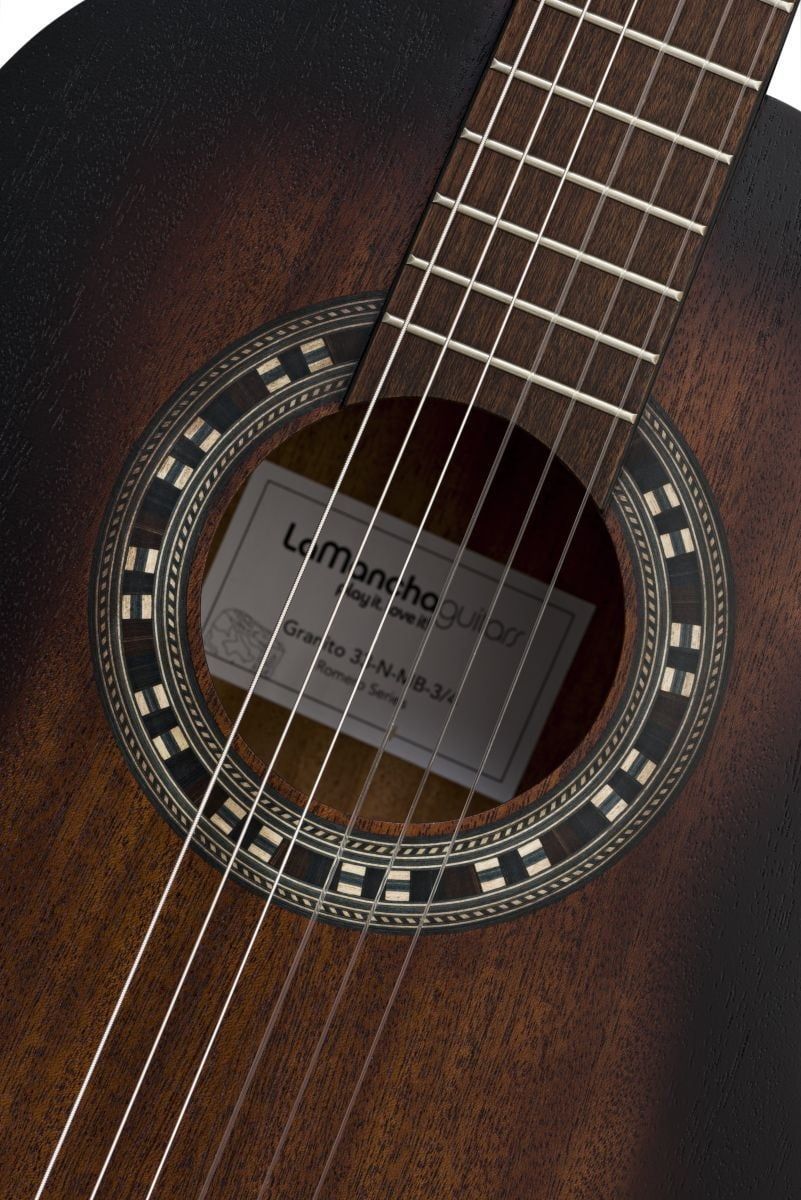 La Mancha Romero Granito 33-N-MB-3 4 Mahagoni Burst Satin 3 4 Konzertgitarre Decke: Mahagoni Boden und Zargen: Mahagoni Hals: Mahagoni Griffbrett: Ovangkol Mensur: 59 cm ( 23,2' ) Sattelbreite: 46 mm Sattel und Stegeinlage: NuBone Binding: ABS schwarz Mechaniken: vernickelt mit schwarzen Knöpfen Sai
