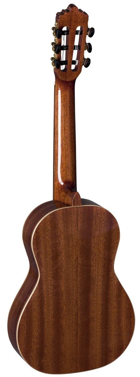 La Mancha Rubi S 53 - 1 2 1 2 Modell Decke: Fichte massiv Boden und Zargen: Mahagoni Hals: Toona Kalantas Griffbrett: Ovangkol Mensur: 53 cm Sattelbreite 48mm Steg: Ovangkol Mechaniken: vergoldet mit schwarzen Knöpfen Saiten: Savarez Cantiga High Tension 510AJ Farbe: Natur