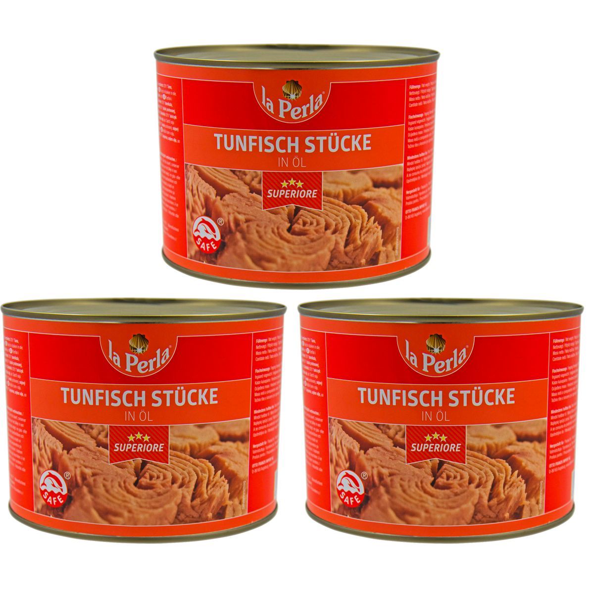 La Perla Thunfisch Stücke in Öl eingelegt aus der Dose 1705g 3er Pack