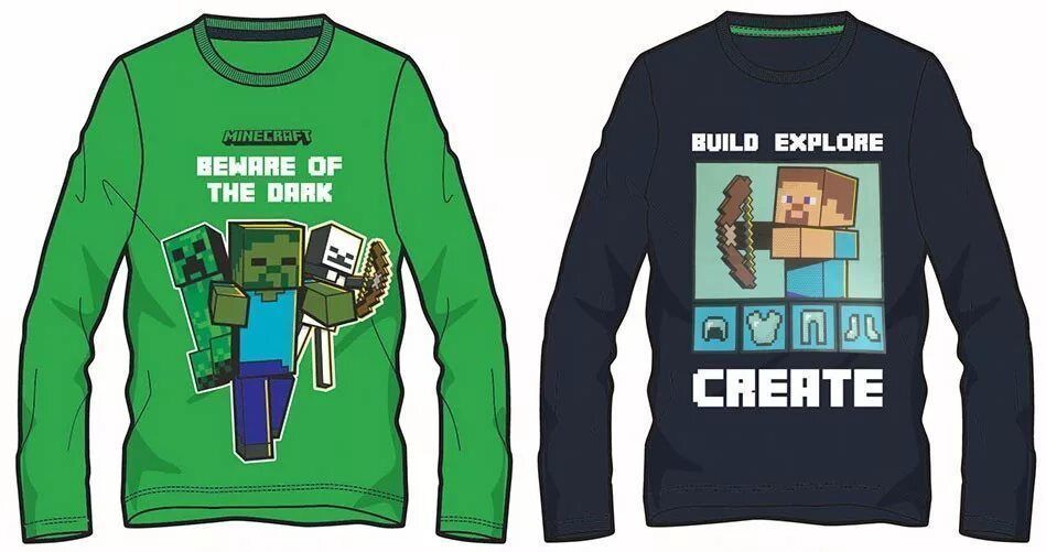 Coole LA-Shirts von Minecraft mit verschiedenen großen Frontprints in Grün oder Blau. Sie haben einen Rundhalsausschnitt. Material: 100% Baumwolle Besuchen Sie gerne auch unseren Onlineshop oder unseren Hood- Shop. Wir versenden mehrere Artikel natürlich immer zusammen und das zum günstigsten Preis.