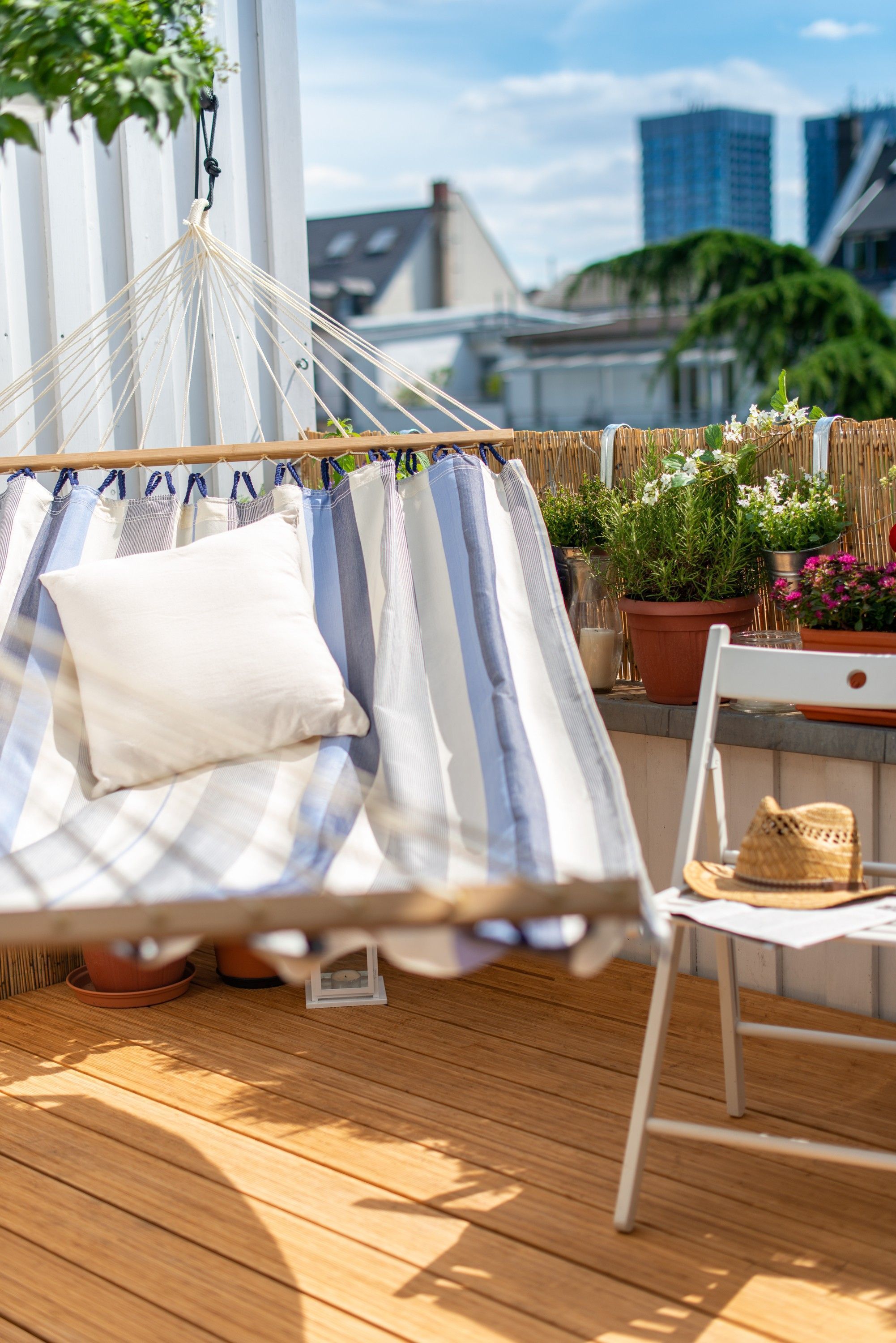 Leg dich hin, schließe die Augen und genieße den unvergleichlichen Komfort: Die Stabhängematte Alisio ist mit ihrer extrabreiten Liegefläche aus Outdoor-Stoff der Star des Gartens! Farbe niebieski Geeignet für 1 Grösse Medium Abmessungen Liegefläche 160 x 210 cm Gesamtlänge 0 Belastbarkeit maximal 1