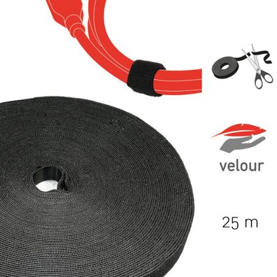 • Doppelseitige Klettbandrolle, 25m x 16mm, schwarz, Klettkabel