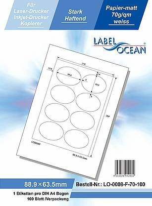 LabelOcean LO-0008-F-70-100, 800 Etiketten, 88,9x63,5 mm, 100 Blatt DIN A4, 70g/ qm