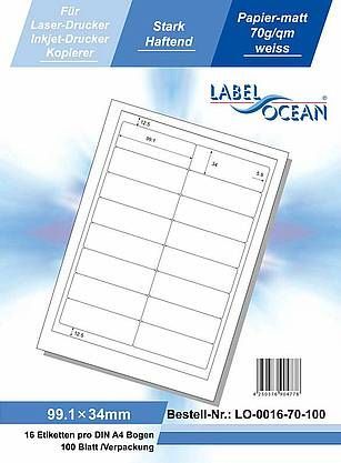 LabelOcean LO-0016-70-100, 1600 Etiketten, 99,1x34 mm, 100 Blatt DIN A4, 70g/ qm