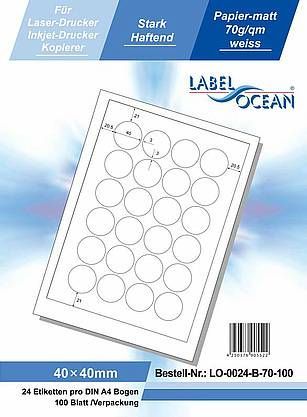 LabelOcean LO-0024-B-70-100, 2400 Etiketten, 40 mm, 100 Blatt DIN A4, 70g/ qm