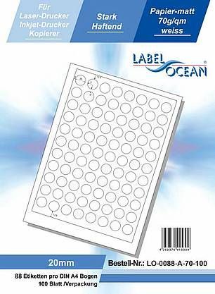 LabelOcean LO-0088-A-100, 8800 Etiketten, 20 mm, 100 Blatt DIN A4, 70g/ qm