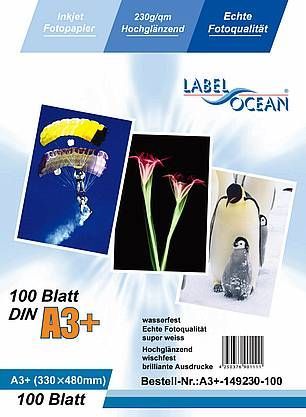 LabelOcean Premium Fotopapier 100Blatt A3+ (330x480mm) 230g/ qm Highglossy hochglänze