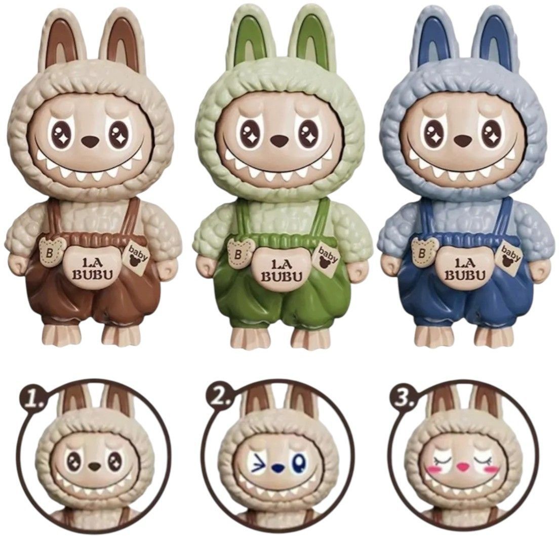 Labubu Emoji Figur - 3 Gesichter & Schlüsselanhänger - Toffee
