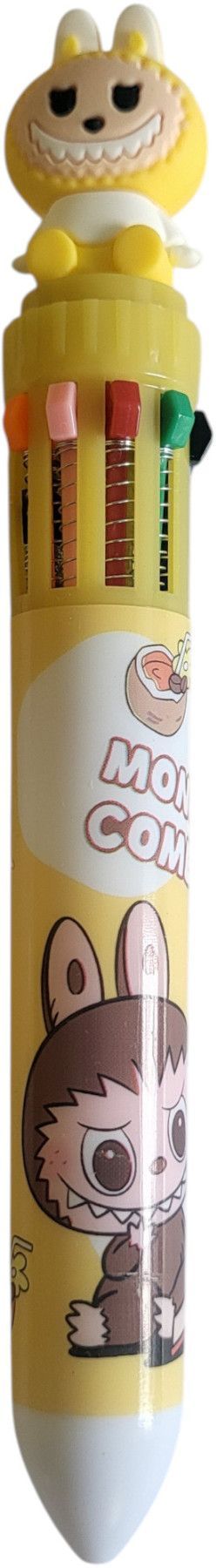 Gelber Labubu Monsters Kugelschreiber mit 10-Farben-Umschalter im Anime-Design