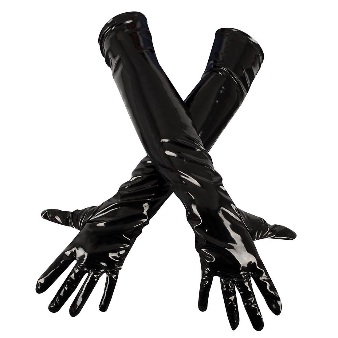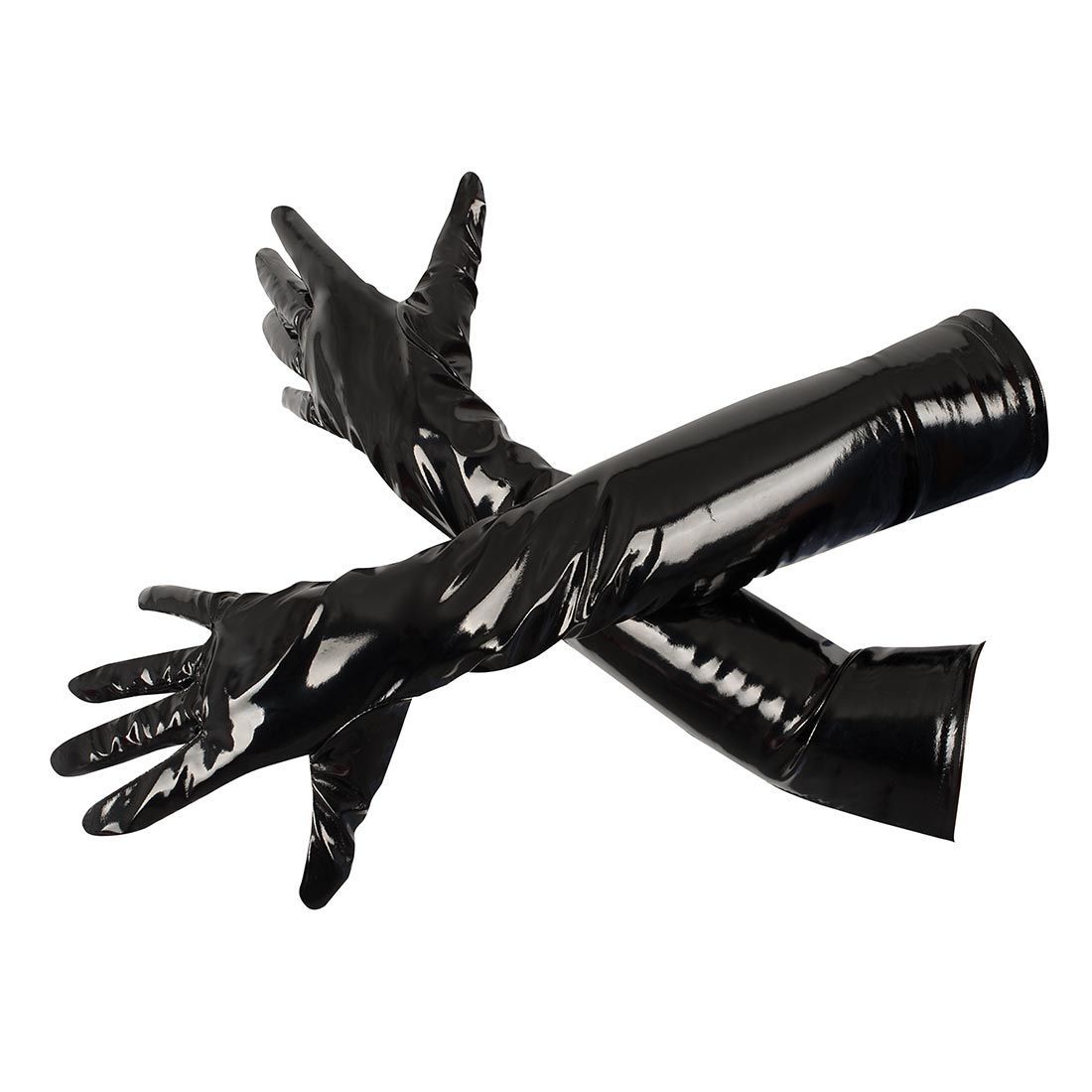 Black Level Lack Handschuhe schwarz S M L XL gloves lang dessous Fasching Karneval Halloween