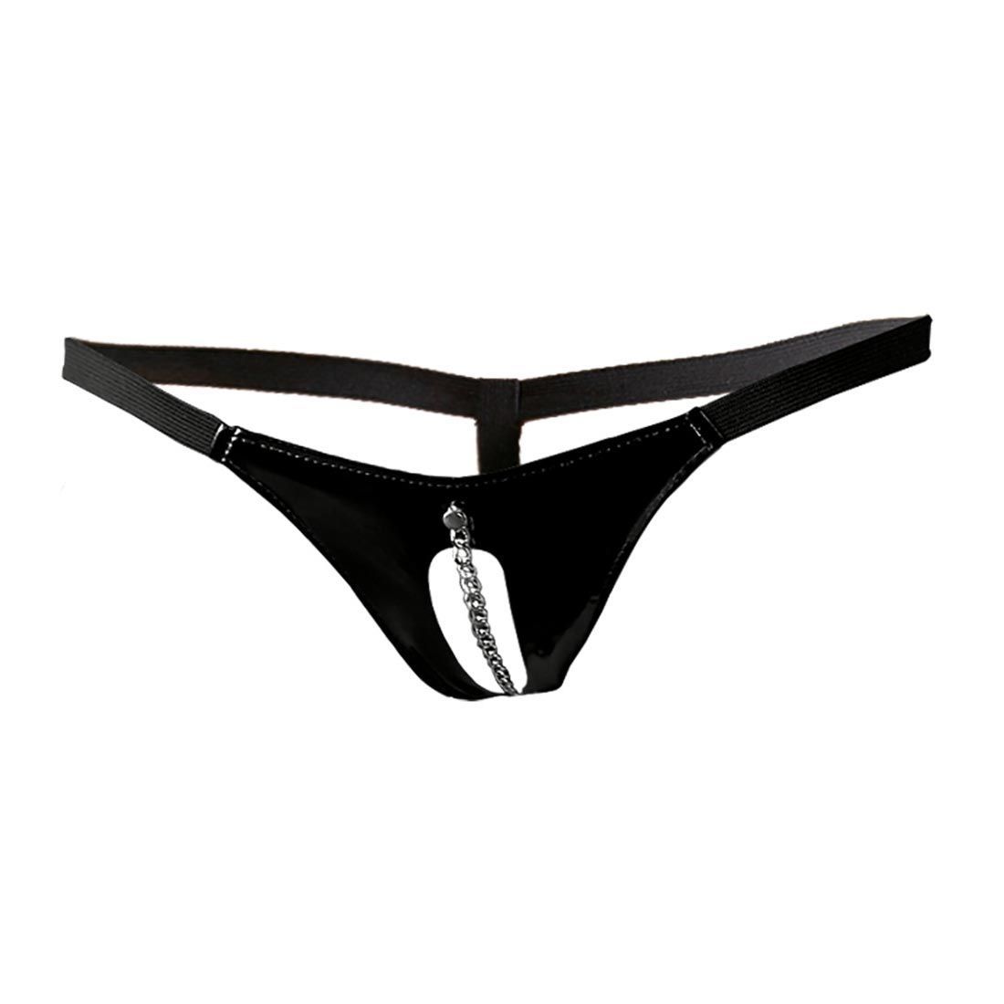 Black Level Lack Mini-String S - XL Schritt-Kette Unterwäsche vinyl Slip Tanga "Caro" L44"