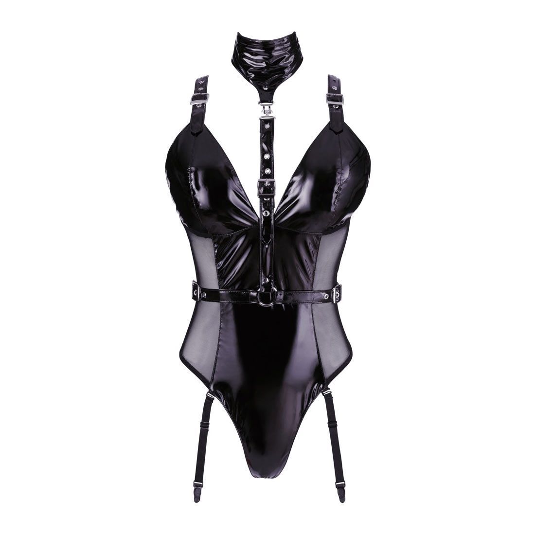 Black Level Lack String-Body S - 2XL extra hoher Beinausschnitt + abnehmb. Strapsen "Mercy"
