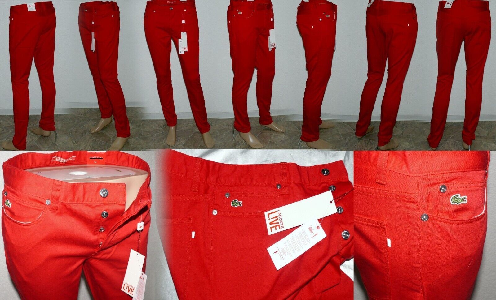 Lacoste HH 2601 240 Stoff Jeans Slim 5 Pocket Hose Stretch W30 L32 W32 L34 Rouge