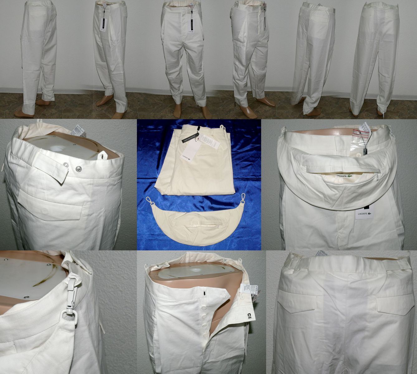 Lacoste HH 2789 4A8 Chino Hose Bauchtasche Cotton Leinen Jeans W 34 42 L34 Weiß
