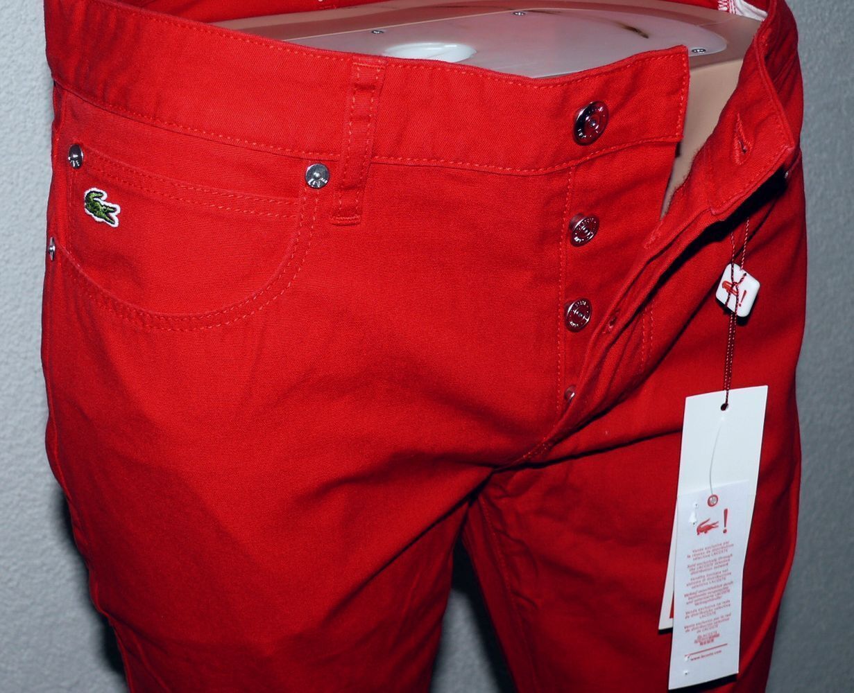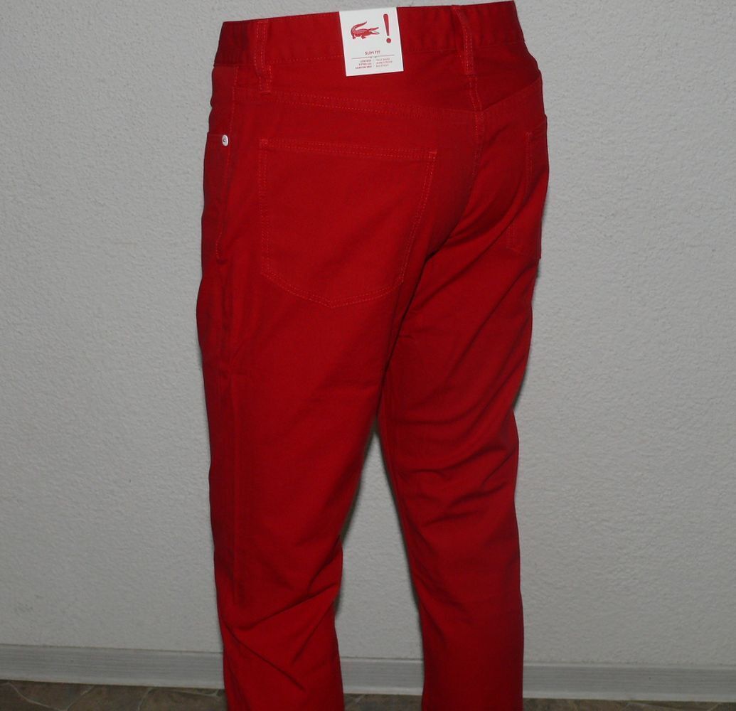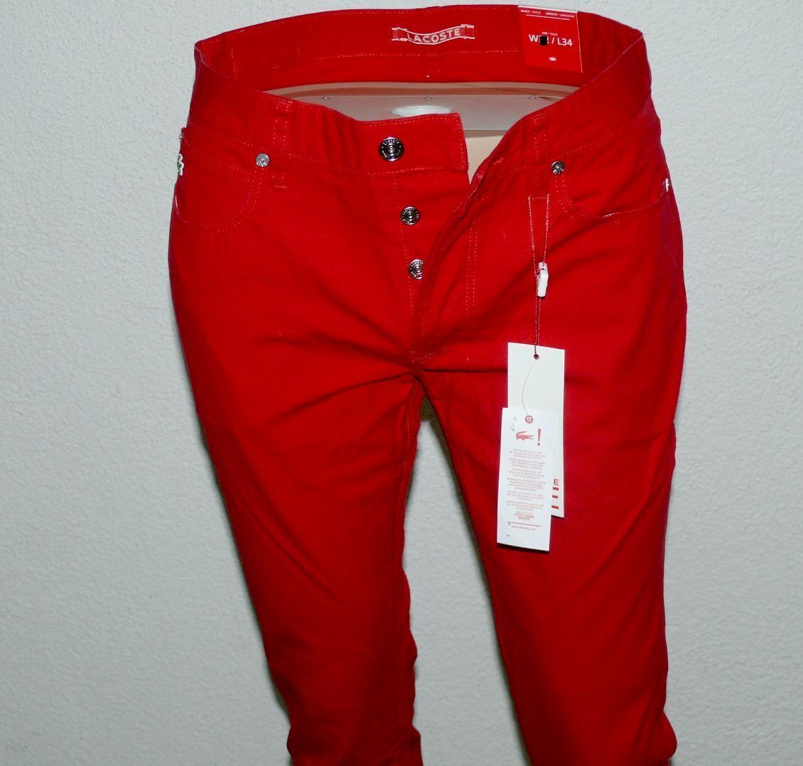 Lacoste Lacoste HH 9291 CW 69T Stoff Jeans Slim 5 Pocket Hose 100% Cotton W32 L34 Dk Rot