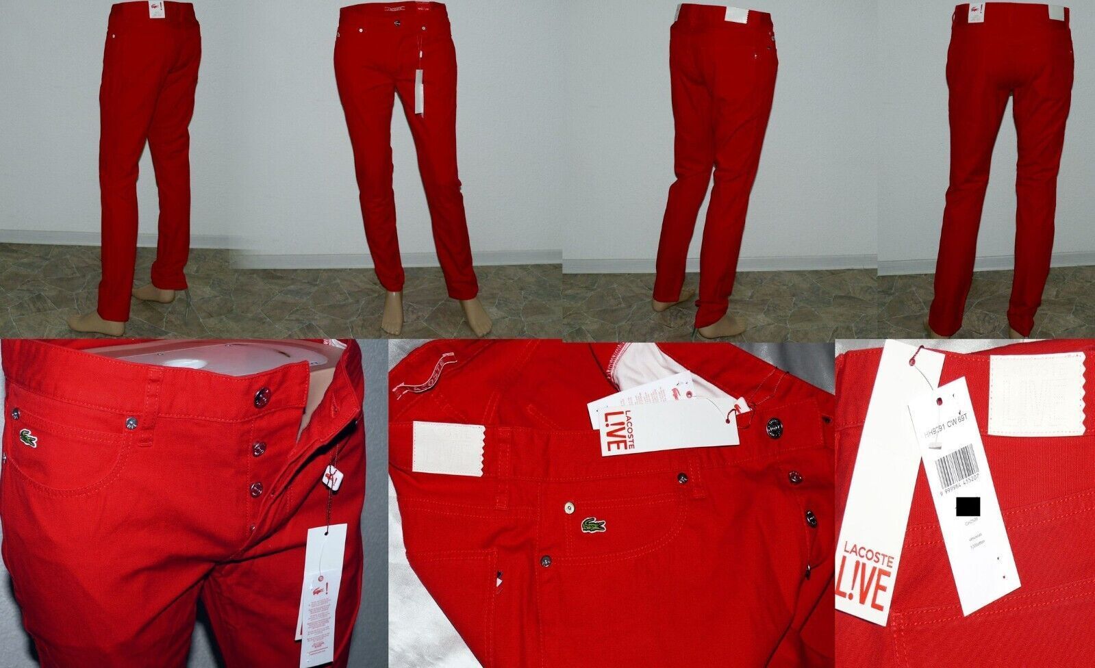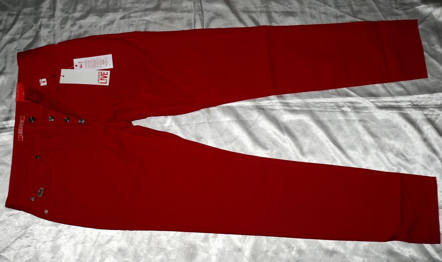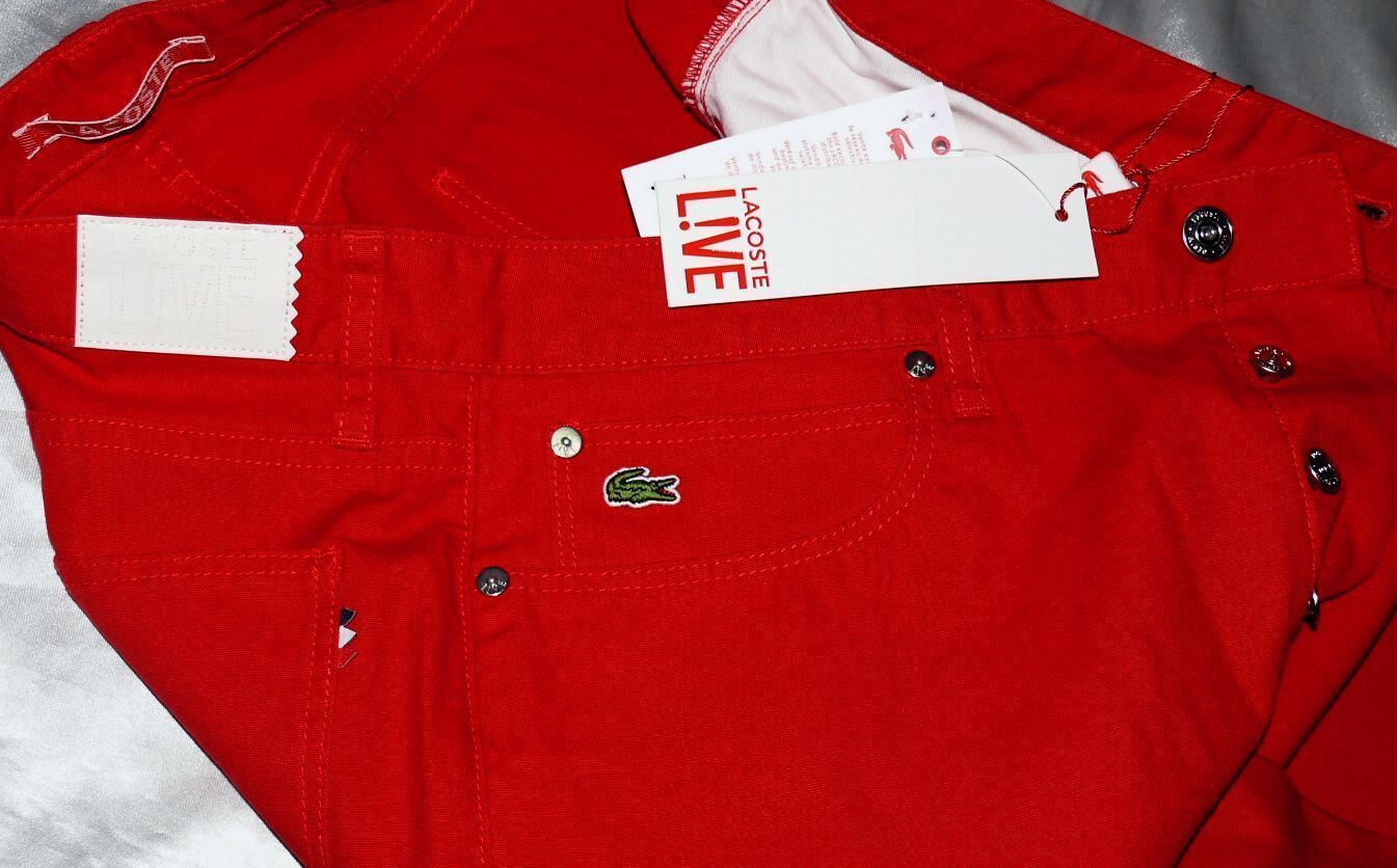 Lacoste Lacoste HH 9291 CW 69T Stoff Jeans Slim 5 Pocket Hose 100% Cotton W32 L34 Dk Rot
