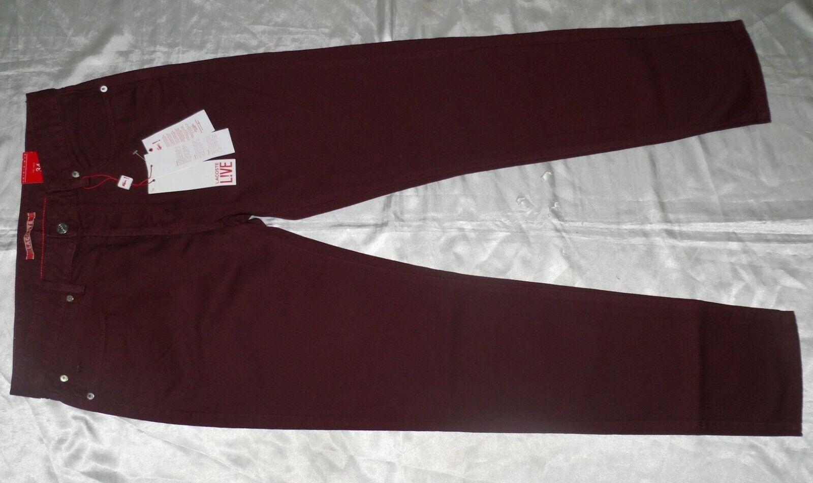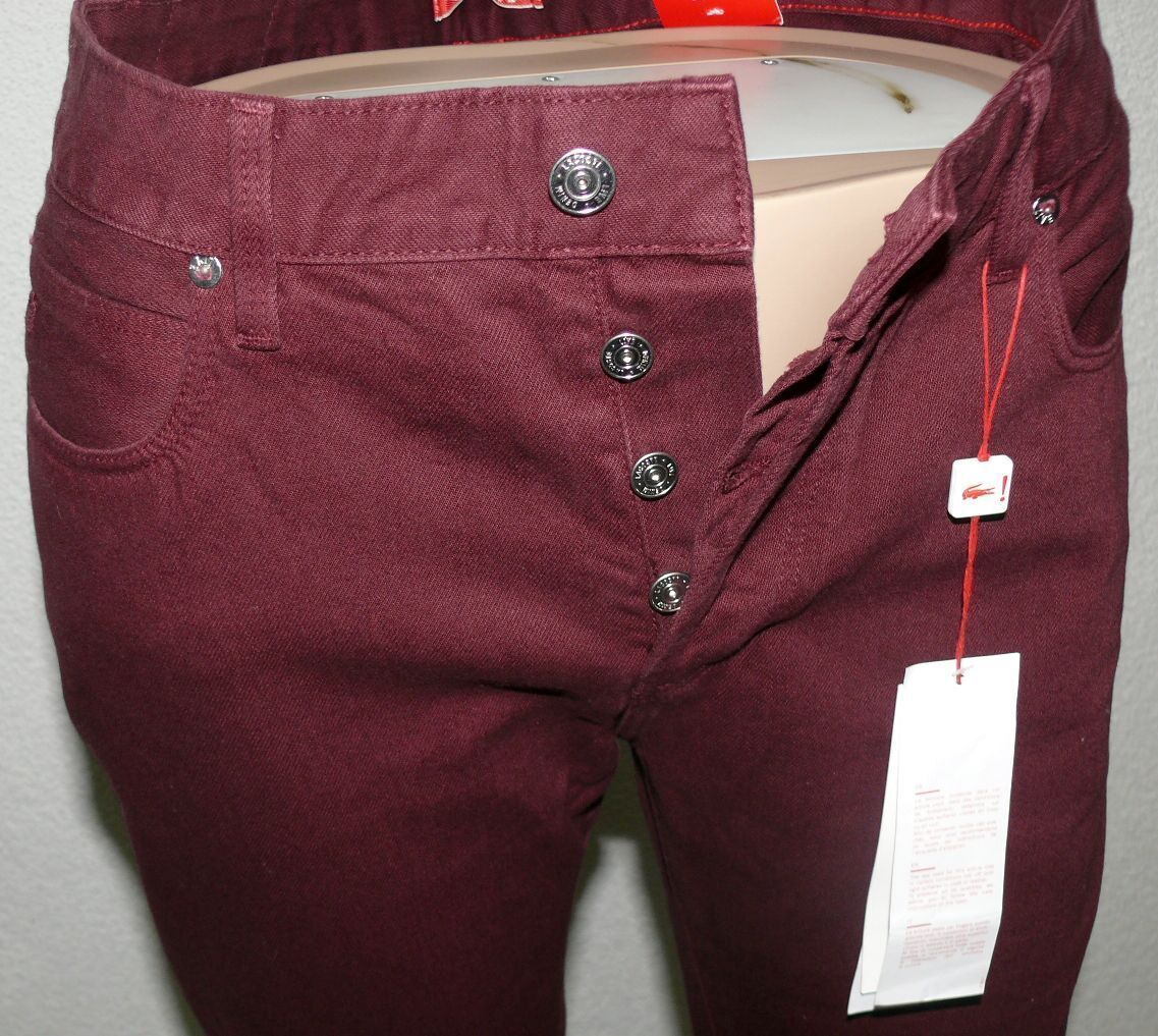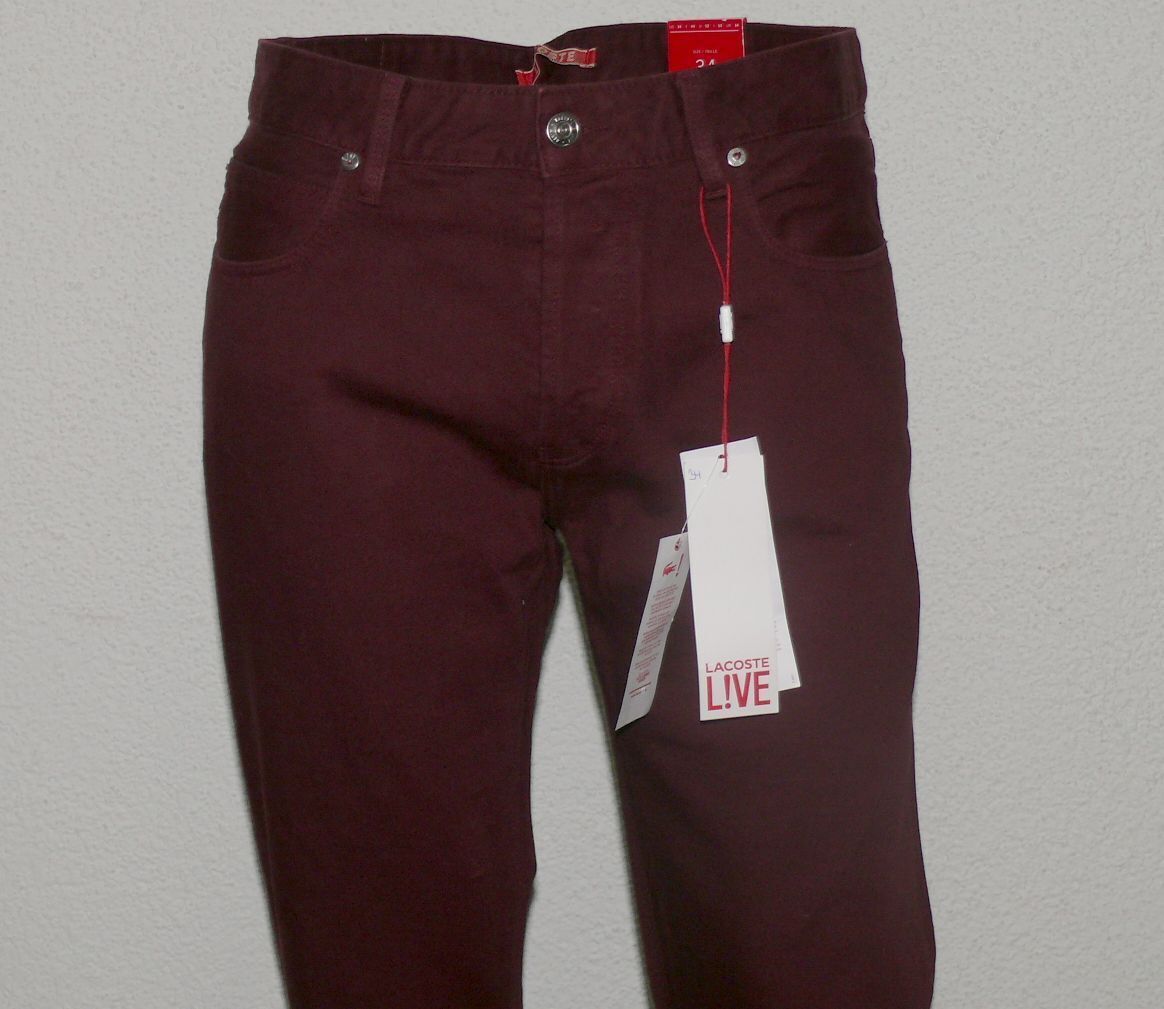 Lacoste HH 9789 4GD Stoff Jeans Slim 5 Pocket Hose Cotton W 28 34 36 L34 Weinrot